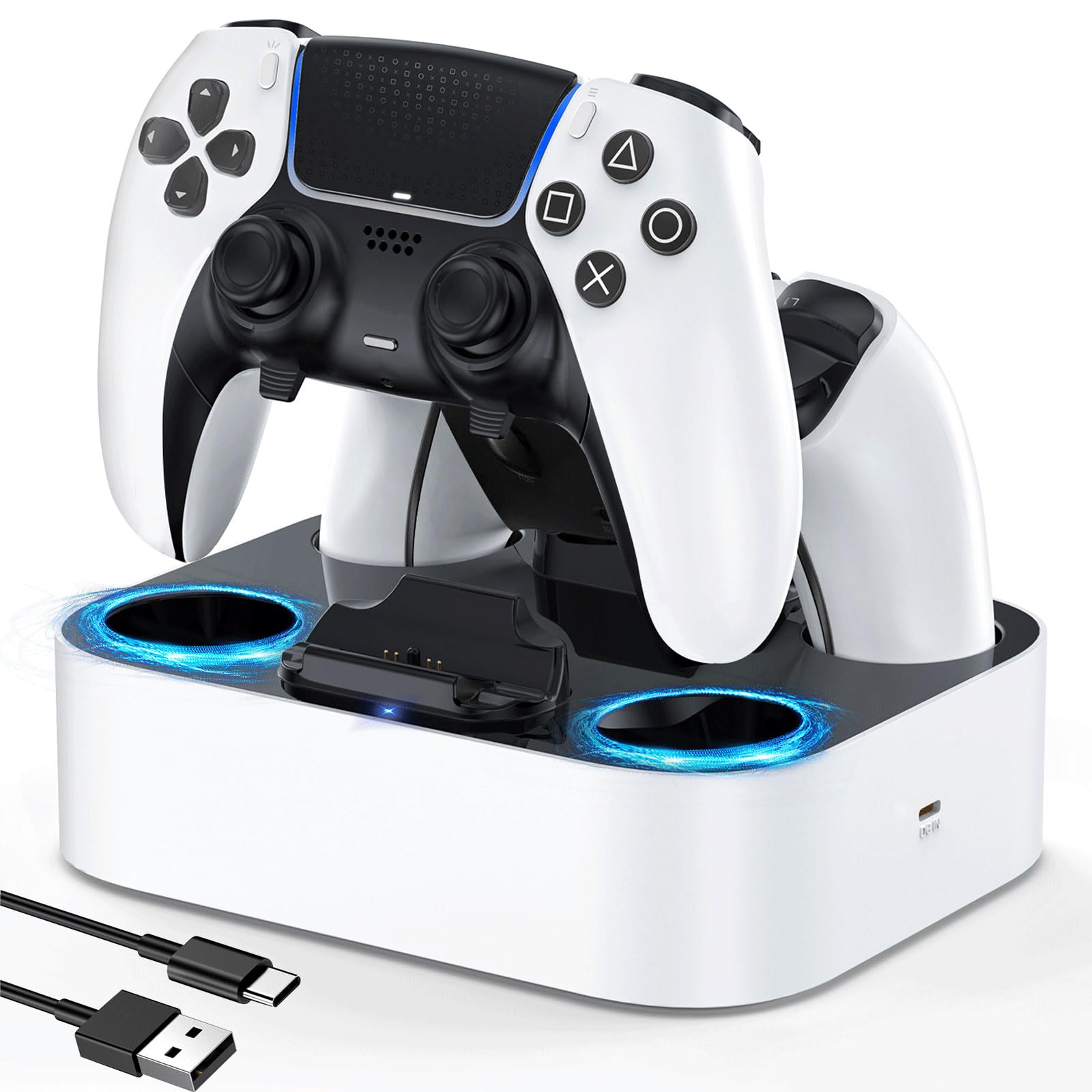 LVFAN PS5 コントローラー 充電器 充電スタンド PS5 アクセサリー 2台同時 ゲームパッド ステーション PS5 周辺機器 LED指示ランプ付き 収納一体型 ベースドック 滑り止めマット付き ホワイト
