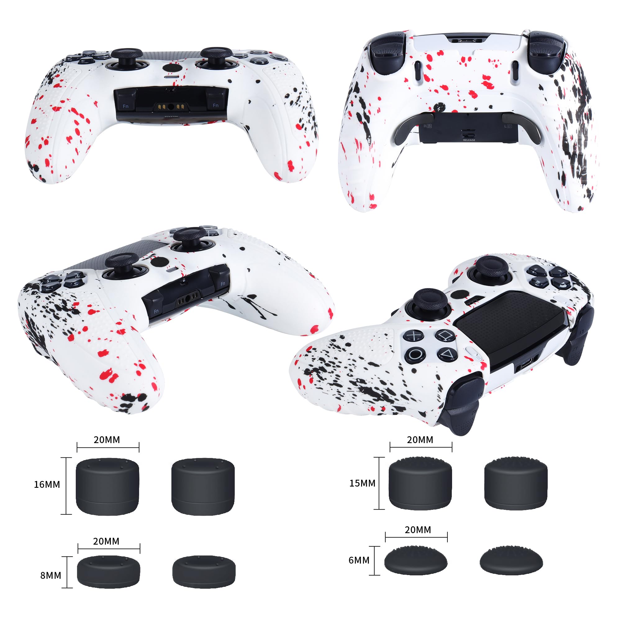 JYXETOV PS5 Edgeコントローラー カバー、人間工学に基づいた、シリコーン保護、無料の8ボタンキャップ、オリジナルの充電器で充電できます、滑り止めデザイン、両面印刷パターン