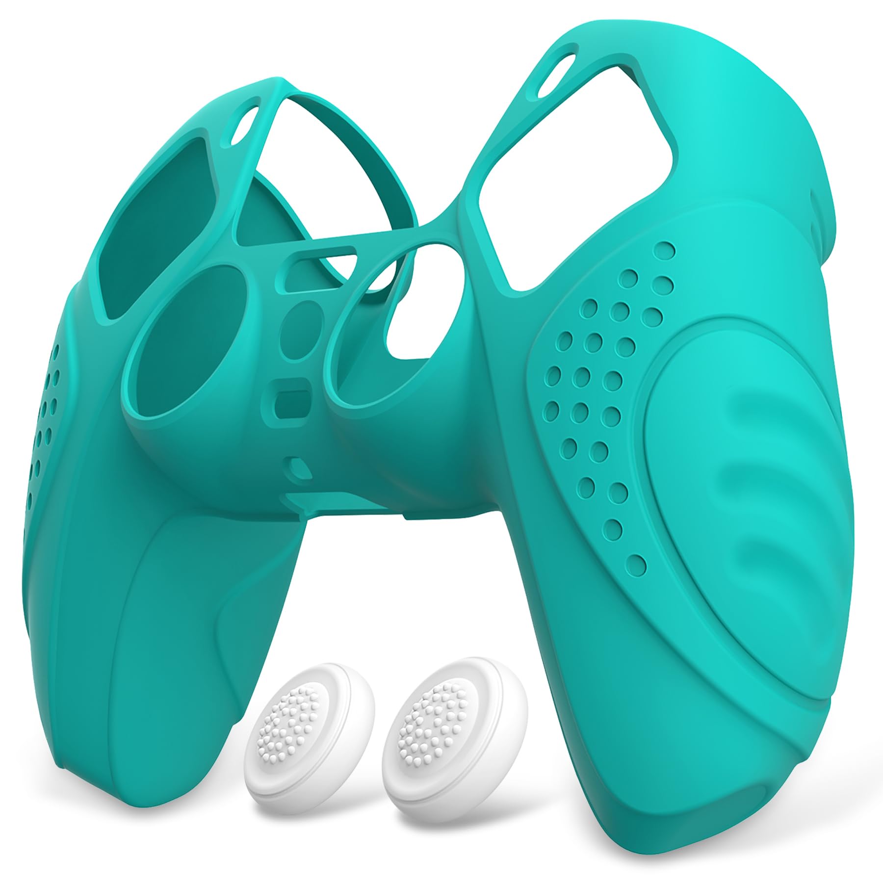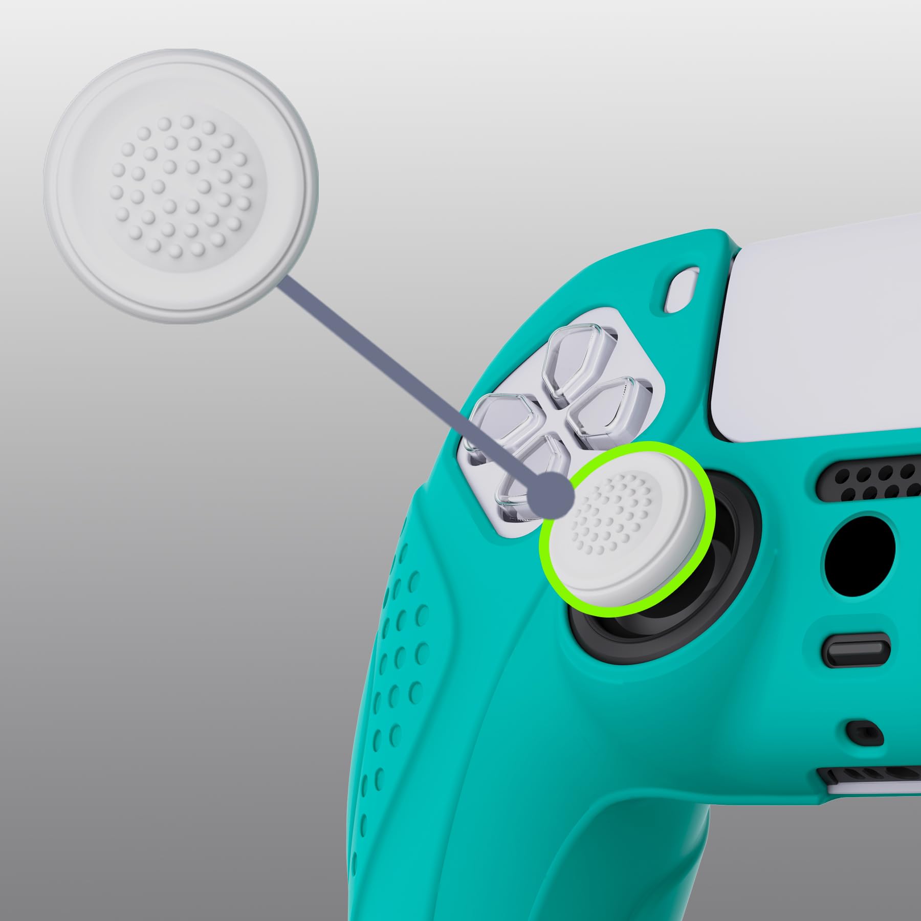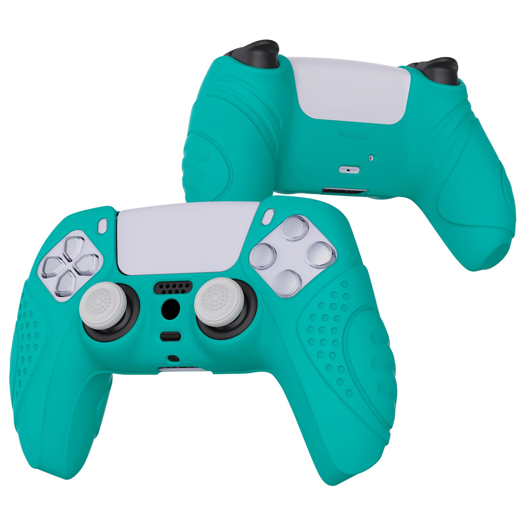 eXtremeRate PlayVital ps5コントローラーに適用するカバー、ps5コントローラー対応用保護カバー、スティックキャップ付き【ガーディアンエディション-アクアグリーン】