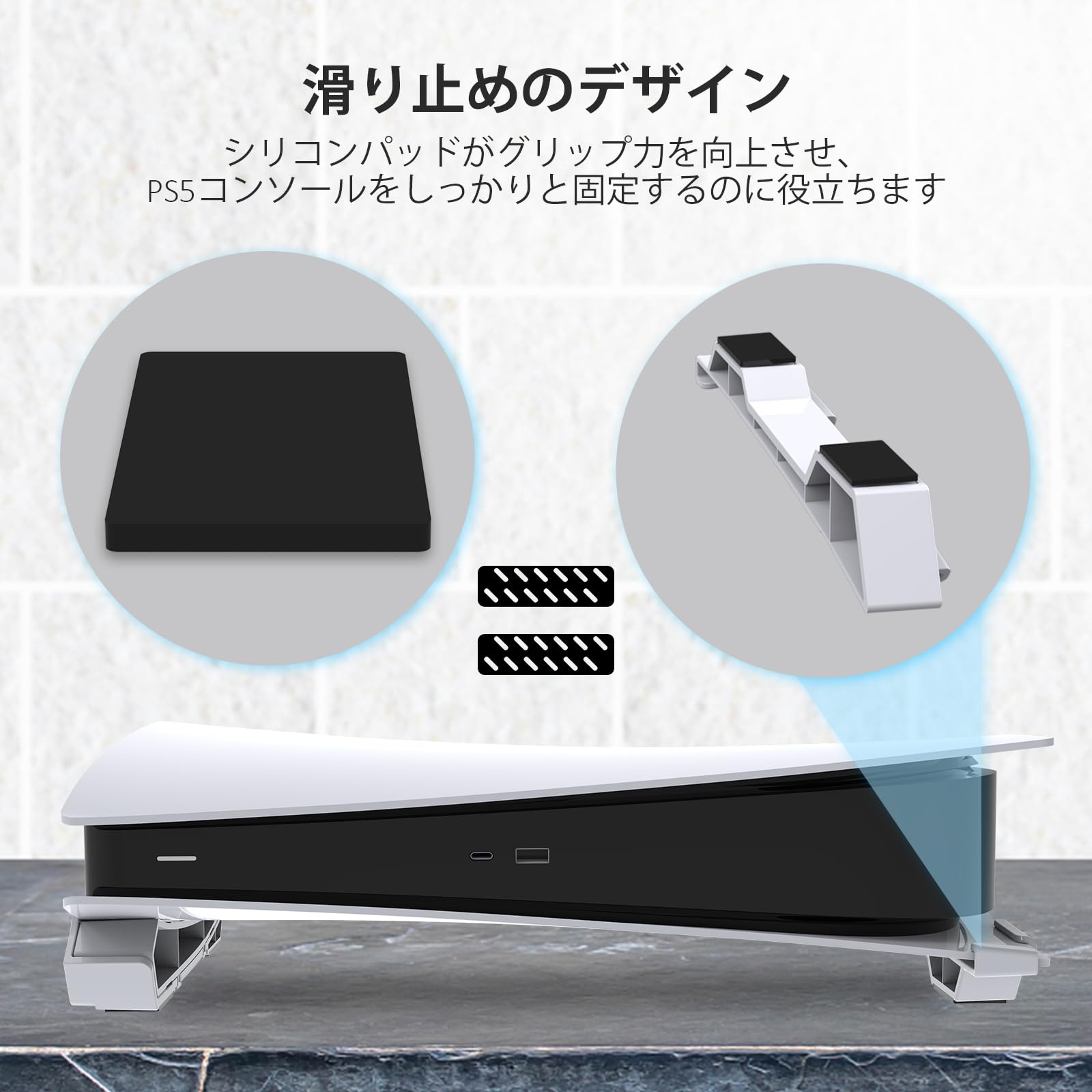 * 【滑り止めボトム】スタンドの底部にシリコンすべり止めがついており、強力な滑り止めグリップを提供します。 これにより、PS5 コンソールへの意外なぶつかりによる落下を防止し、コンソールを安定した位置に維持します。