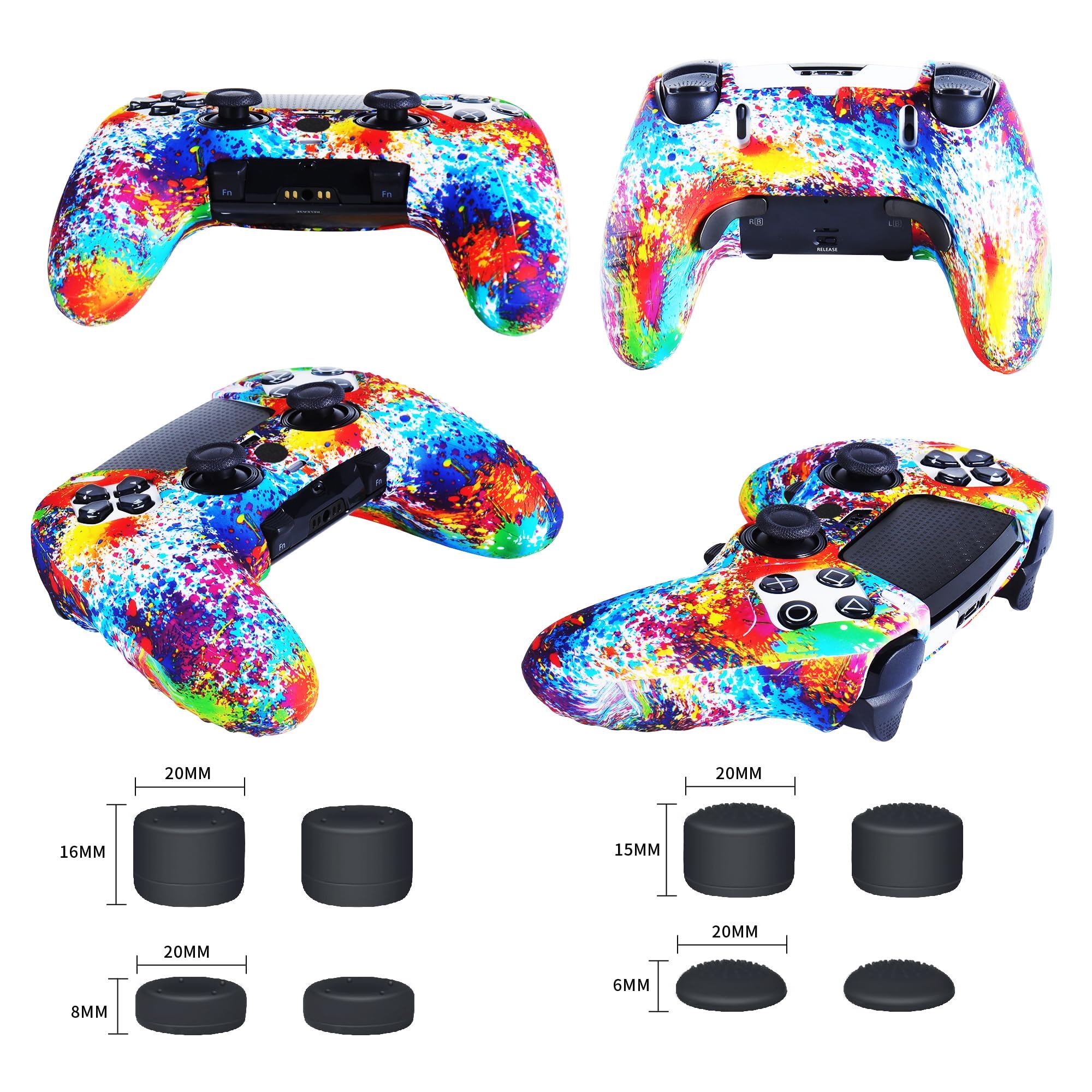 JYXETOV PS5 Edgeコントローラー カバー、人間工学に基づいた、シリコーン保護、無料の8ボタンキャップ、オリジナルの充電器で充電できます、滑り止めデザイン、両面印刷パターン