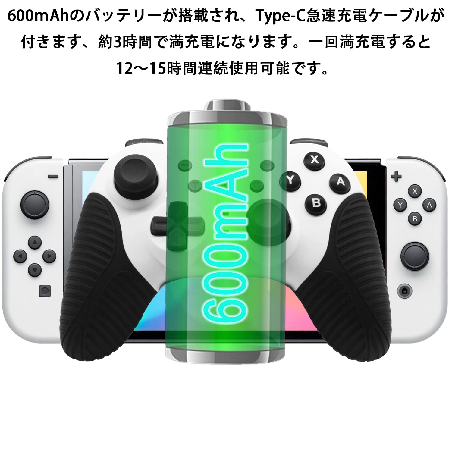 * 【大容量バッテリー&低電量警告】本製品は600mAhのバッテリーを内蔵しており、約3時間で満充電になります。満充電後は12~18時間の連続使用が可能です。コントローラーには低電圧警告機能が搭載されているため、Switchで電池残量を確認する手間もなく、とても便利です。