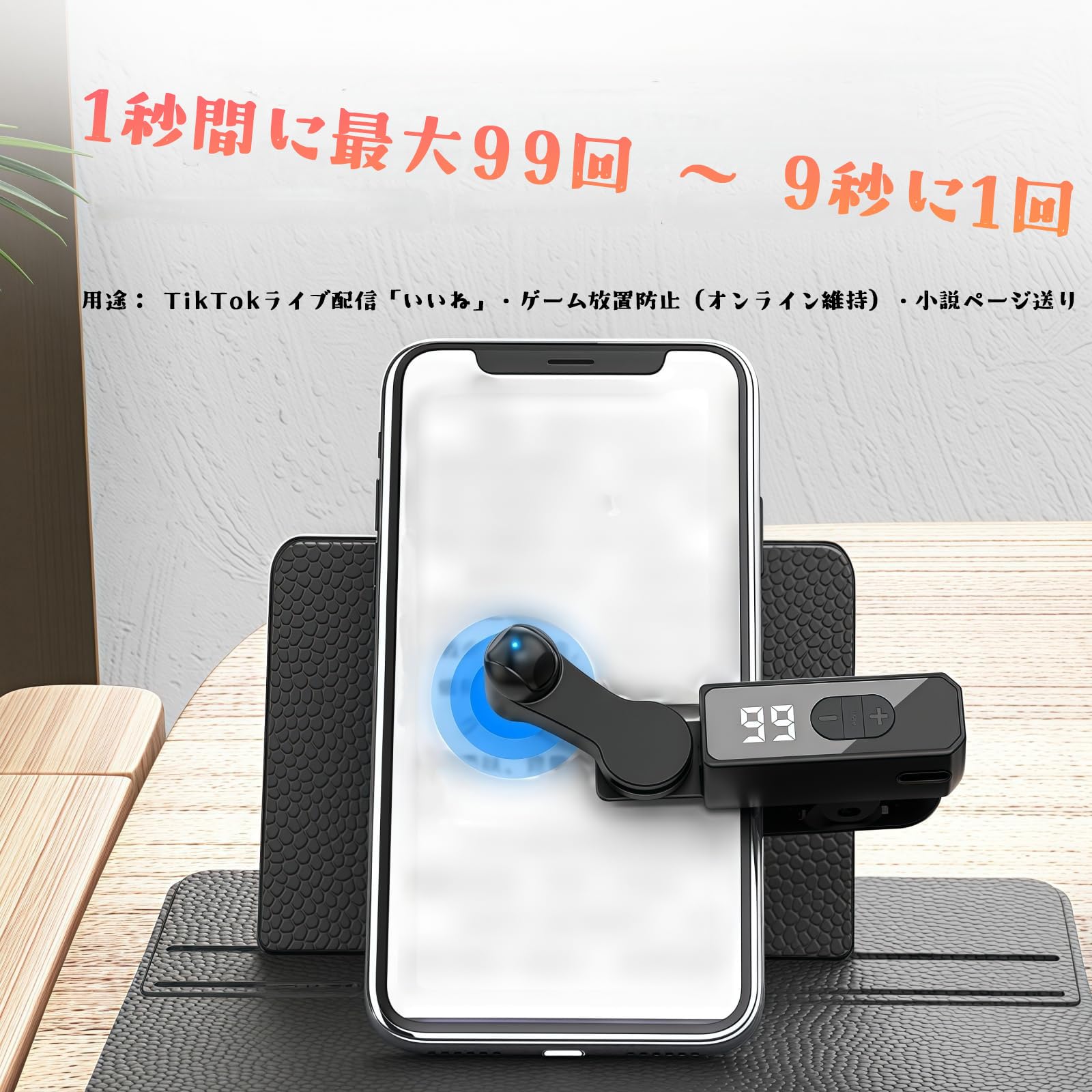 * 【新モデル|高精度自動クリック】107段階に及ぶ精密な速度調整が可能な自動タッパー。秒間99回の高速タップから9秒に1回の低速動作まで、スマホゲームやTikTokライブの「いいね」連打、電子書籍のページ送りなど、多様なシーンで安定したクリックを実現します。