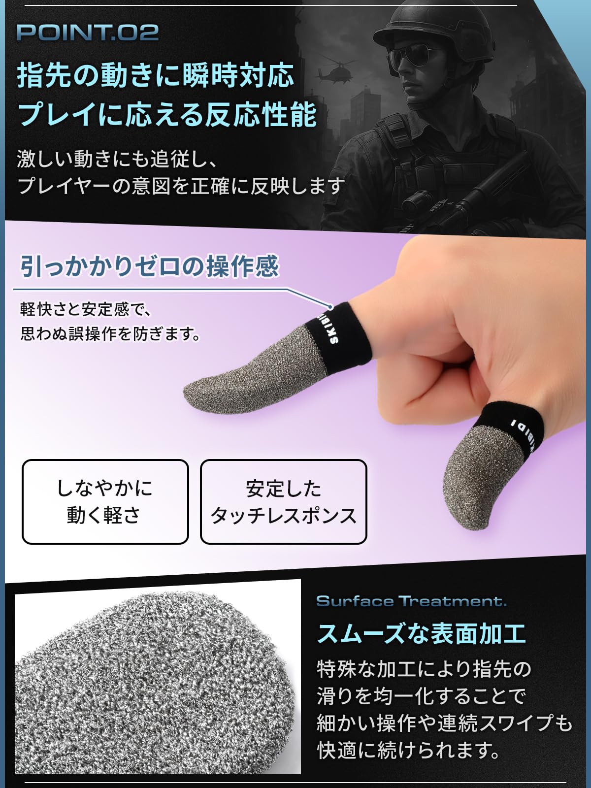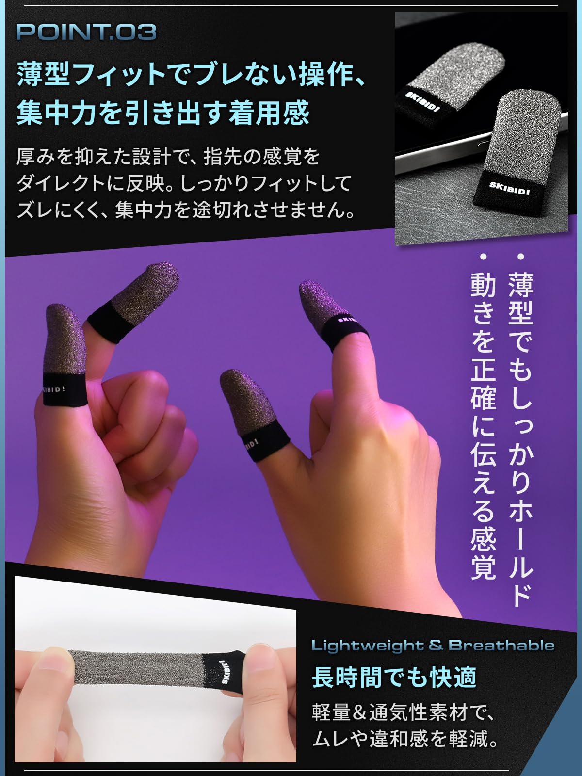 【1パック】銀撃ストライク 10X|100%シルバ繊維 ゲーミング用指サック |スマホゲーム専用 高感度・超反応モデル|手汗対策 シームレス仕様 指カバー 音ゲー・格ゲー・FPS対応 (シルバー繊維1パック)