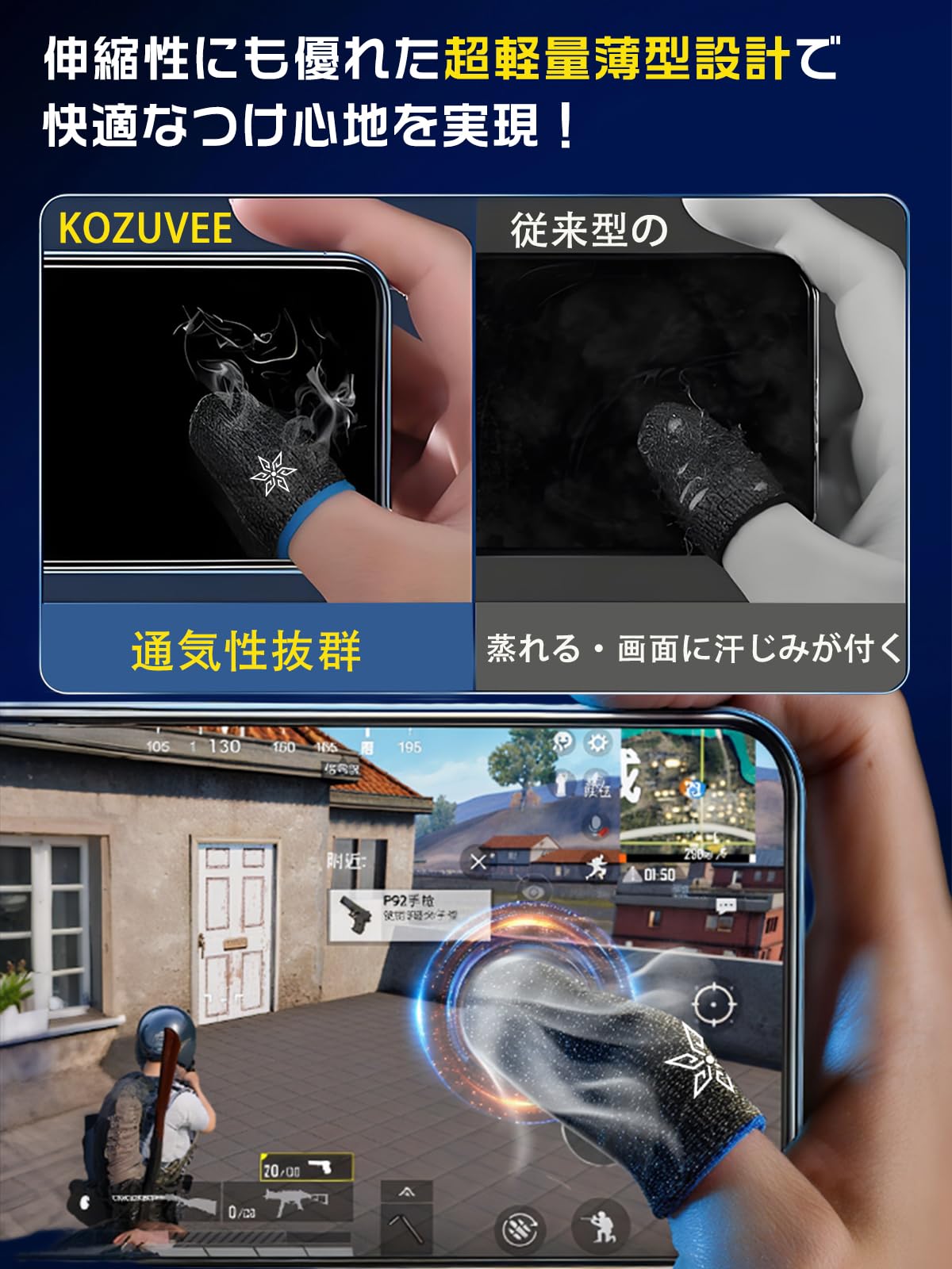 KOZUVEE 指サック ゲーム 縫い目無し 音ゲー スマホゲーム ゆびさっく 超高感度 超薄銀繊維 携帯 手汗対策 指カバー 全指対応 誤触減少 滑り止め iPhone/Android/ipad 対応 10個入り