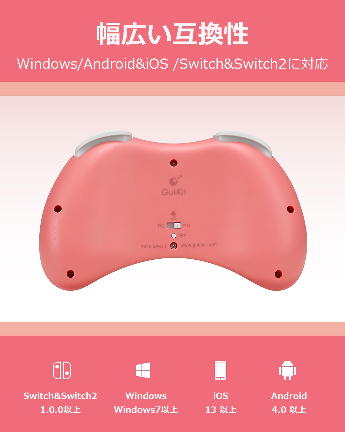 GuliKit Elves 2 コントローラー 【Switch 2スリープ解除】 有線 ワイヤレス ホールスティック ドリフト防止 半自動/全自動連射機能 6軸ジャイロセンサー 振動調整可能 20時間連続使用 ゲームパッド 超低遅延 800mAh大容量バッテリー Switch/Switch2/PC/Android/IOS対応 超軽量 薄型 コンパクト レトロ 保護ケース付き 珊瑚色