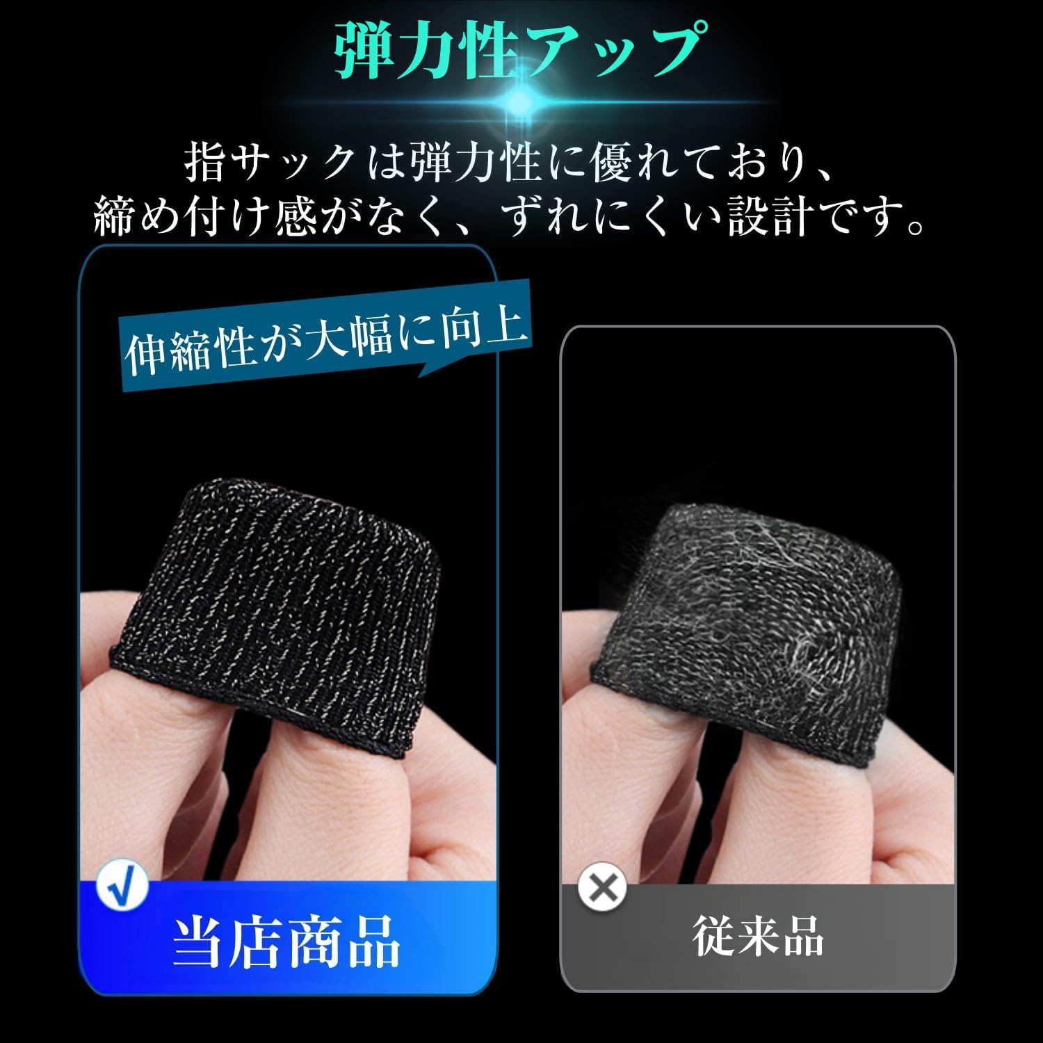 * 【全指対応・新型登場】日本のプレイヤーは複数の指を使ってゲームをすることが多いため、この指サックは日本人プレイヤーの指のサイズに合わせて開発され、5本の指に完璧にフィットする「滑り止め銀繊維」を使用しています。装着時の締め付け感や、指から外れやすいという欠点を改善するため、指サックの周囲は4.4cmに設計され、ほとんどの人に適しています。さらに、5本の指に装着しても完璧にフィットし、長時間ゲームをしても指サックが指から外れることはありません。セット:シルバー10枚入り