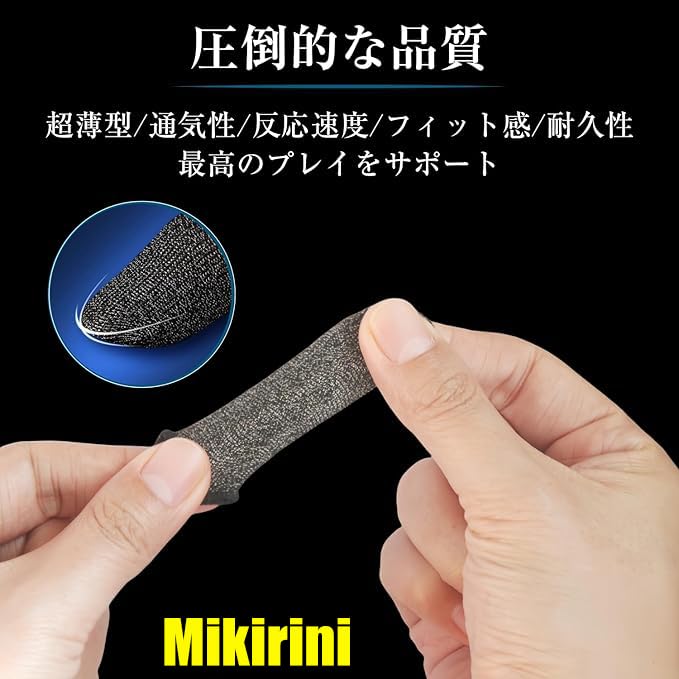 MIKIRINI 指サック ゲーム 縫い目なし 音ゲー 指サック スマホゲーム 荒野行動 PUBG Mobile Codモバイル Apex ゆびさっく 超高感度 超薄カーボンファイバー ゆびサック 携帯 手汗対策 指カバー 全指対応 誤触減少 滑り止め iPhone/Android/ipad 対応 40個入り (40件)