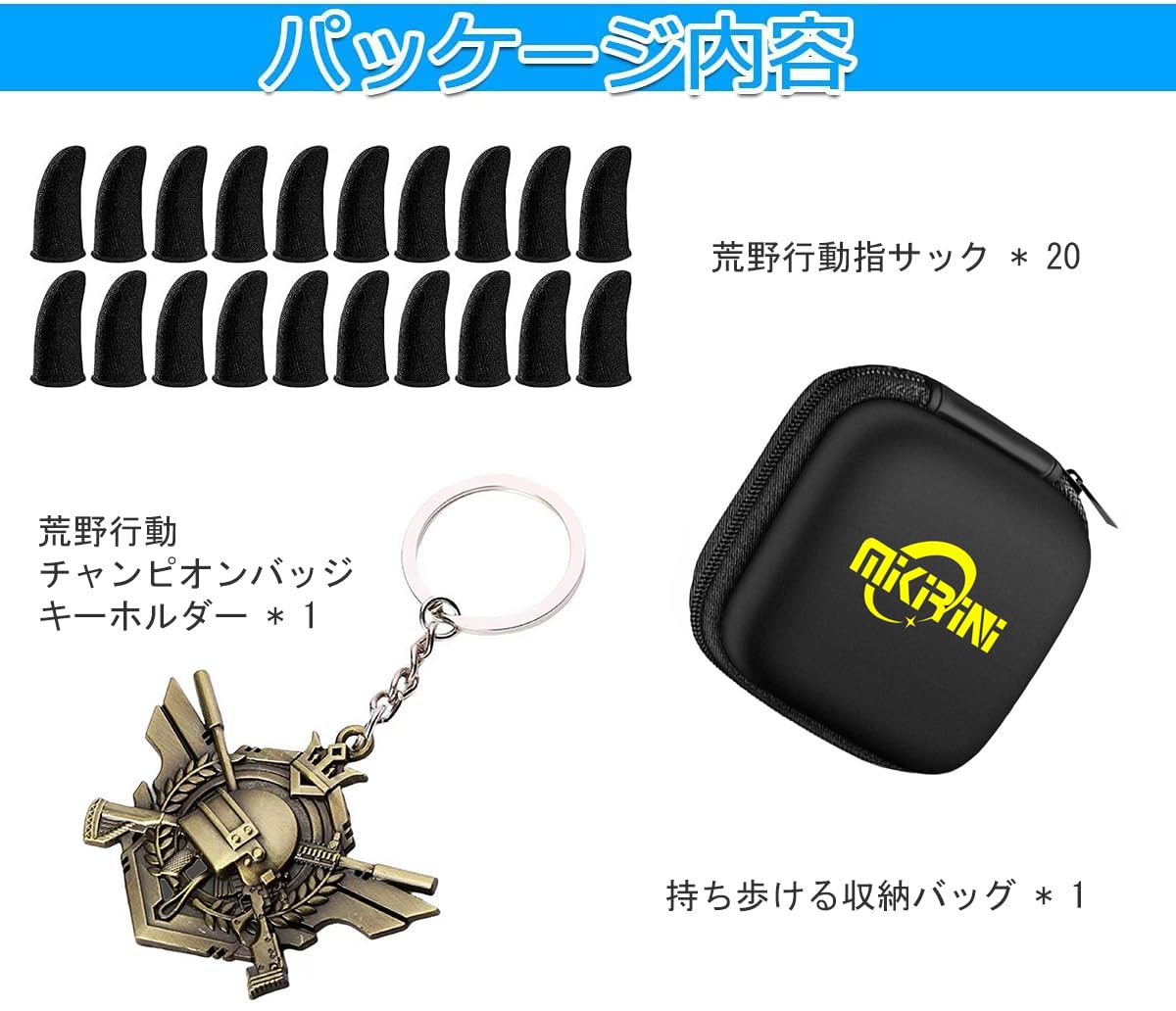 * 【パッケージ内容】荒野行動 指サック*20 + PUBG チャンピオンバッジキーホルダー*1 + 高品質収納バッグ * 1