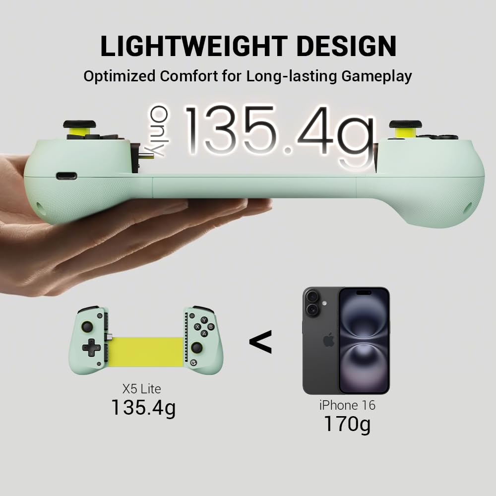 * 【パススルー充電&軽量】パススルー充電により、デバイスを充電しながらゲームを続けることができ、ゲームプレイを中断することなくプレイできます。X5 Liteはわずか135.4gの軽量設計で、人間工学に基づいてレーザー刻印されたテクスチャグリップにより、長時間のゲームプレイでも安全で快適な装着感を実現します。