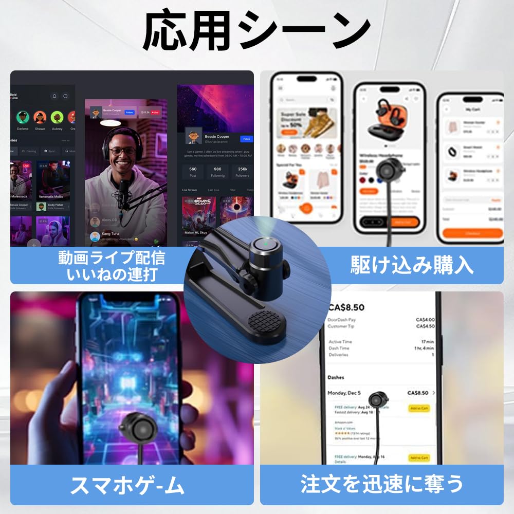 * ◼【広範な使用シーン】:コンパクトで軽量設計で、持ち運びが簡単です。USB給電に対応しているため、室内でも屋外でも使用でき、パソコン、モバイルバッテリー、コンセントなど、様々な給電方法が可能です。まざまなタッチスクリーンデバイスに完全に対応、Android、iPhoneおよびさまざまなタブレットに通用。①ticktock ライブ配信室で素早くいいねを押すことができます。②出前配達員が注文を奪取するのに適しています。③商品や各種チケット、切符を素早く購入することができます。