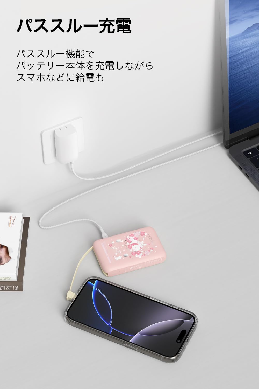 ■ 【ケーブル一体型】USB-Cケーブル一体型で、スマホの充電に加えてモバイルバッテリー自体の充電も内蔵ケーブルから行えます