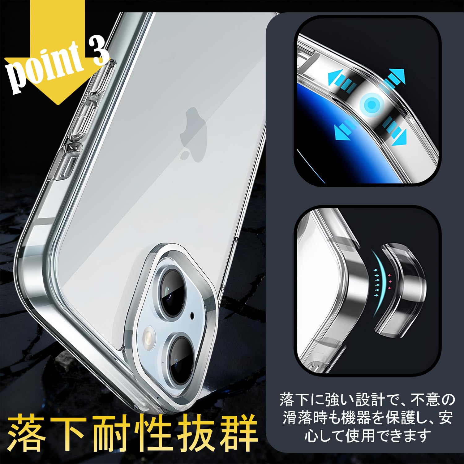 * 【驚きの透明さ】保護力が強いと同時に、ケースの背面部分が透明で、iPhone本来の美しさと高級感をそのままに楽しめます。ケースは黄変防止加工されているため、 経年劣化等による変色もにくいです。また柔らかい布で拭き取って手垢や皮脂まみれなど綺麗に落ちまるので、いつでも新しさと美しさを維持できます。