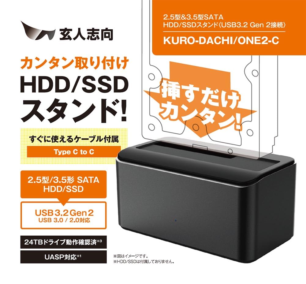 玄人志向 外付け 3.5 型 / 2.5 型 SATA 接続 HDD / SSD スタンド お立ち台 USB3.2 Gen2 対応 ( Type-C ) 最大容量 32TB 電源連動機能 【国内正規品】 KURO-DACHI/ONE2-C