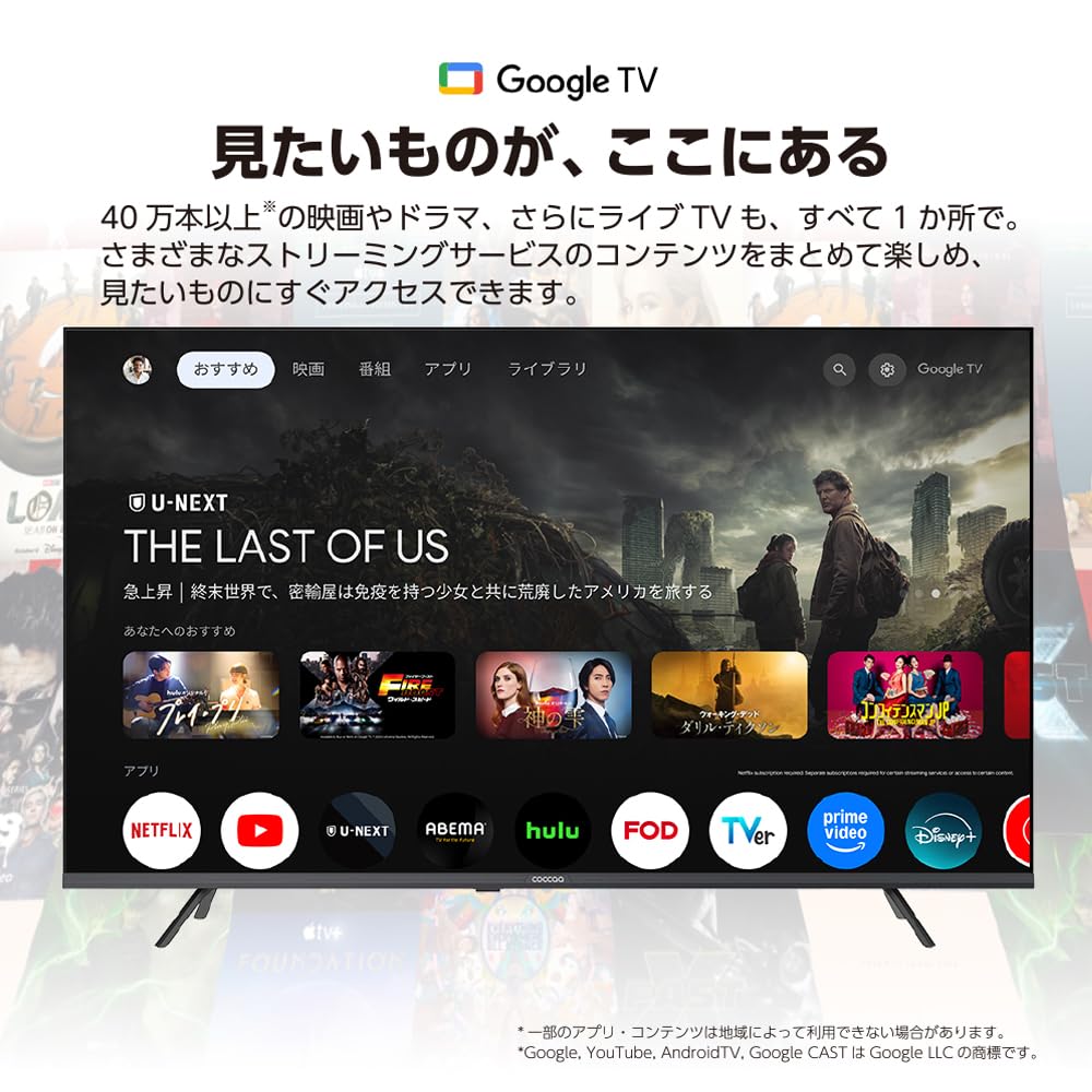 * ■Googleアシスタント搭載 Googleアシスタントを使うことで、映画の検索、アプリのストリーミング、音楽の再生など、あなたの声でテレビの操作ができます。