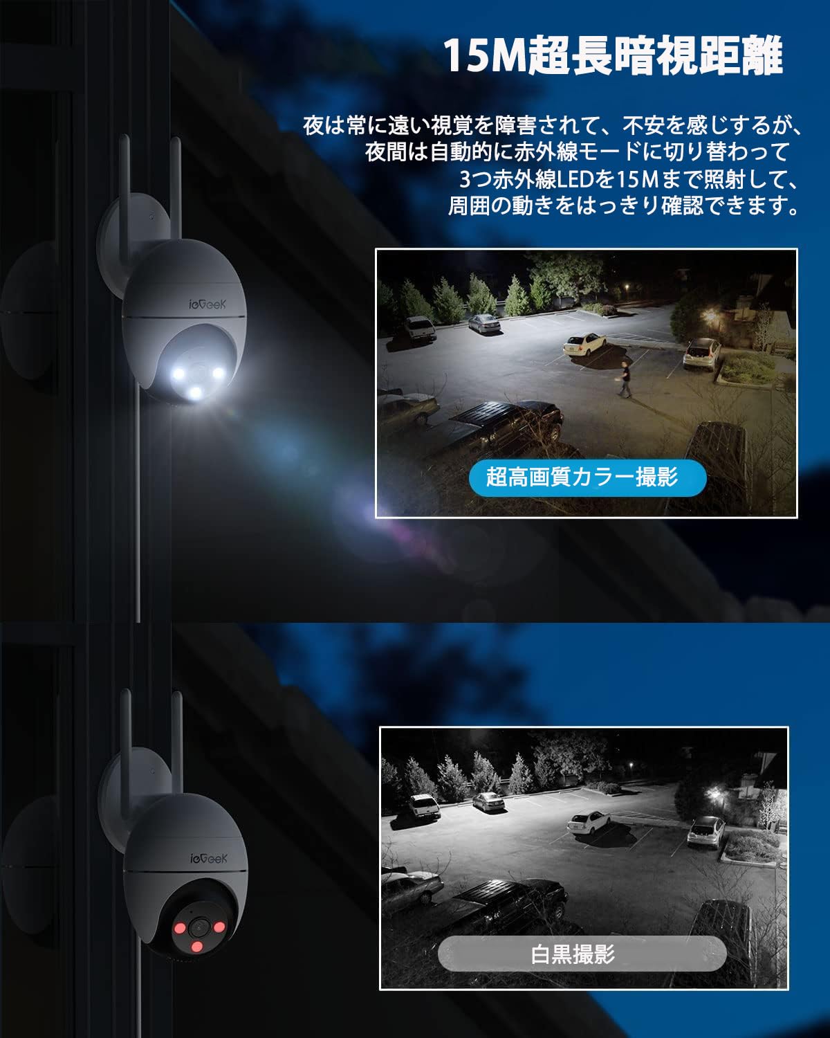 【24時間常時録画・360°撮影可能・自動追尾】ieGeek 防犯カメラ 屋外 ワイヤレス 2.4G&5GWiFi 300万画素 監視カメラ 屋外 黒白/カラー撮影 AI人体検知 動体検知 検出エリア設定 双方向音声通話 遠隔監視 発光威嚇 警報通知 双方向会話 家族共有 Alexa対応 IP66防水 庭/駐車場/玄関 屋外防犯カメラ 無料6秒録画クラウド保存 メモリカードに対応