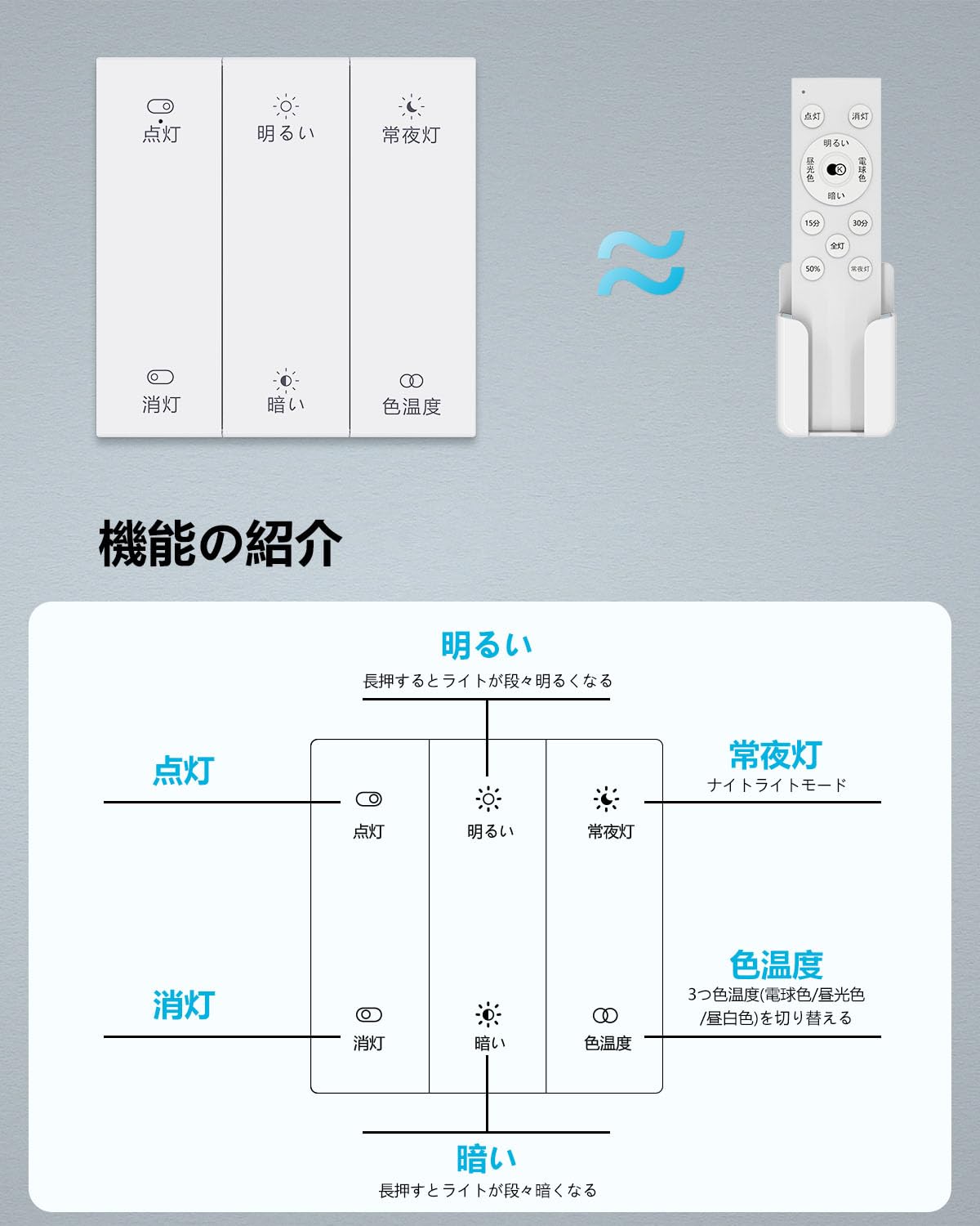 * 【リモコン調光+スマホアプリ制御+ワイヤレススイッチ】:25メートルの範囲内で使用可能な2.4GHzリモコンとワイヤレススイッチを備えています。どんな障害物があっても家の中で簡単に操作できます。ワイヤレススイッチは壁やドアの近くなど、家のどこにでも簡単に取り付けられます。リモコンが見つからない場合や電池が切れている場合でも、LampSmart Proという名前のモバイルアプリをダウンロードするだけで簡単に操作できます。