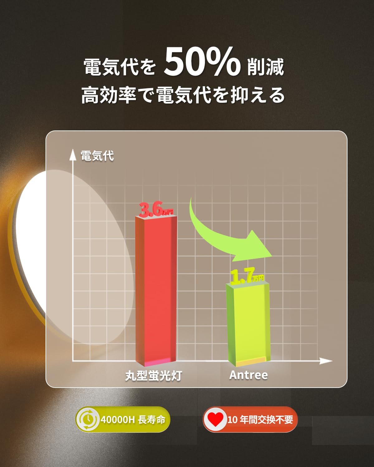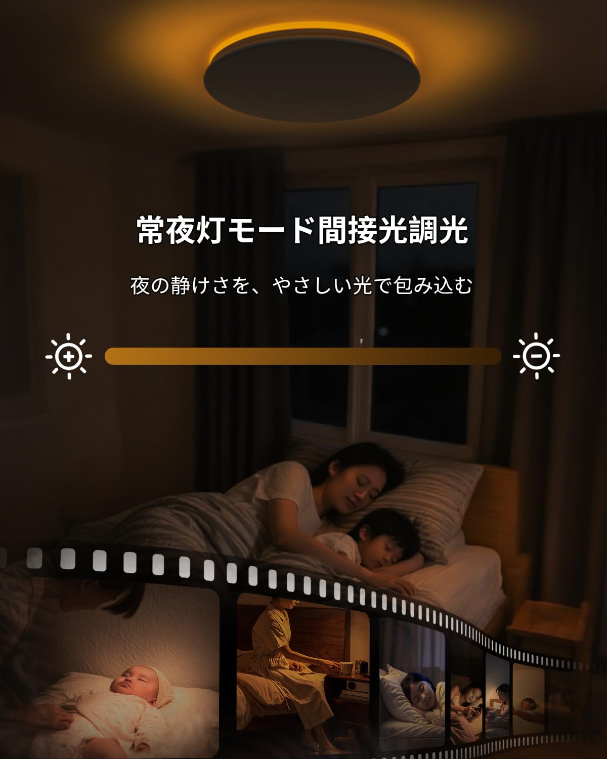* 【14畳対応・高輝度&省エネ・160°広角照射】 直径37cmのLEDシーリングライトは、最大7000lmの明るさで、14畳までのリビング、寝室、ダイニングなどをしっかりと照らします。消費電力はわずか60Wで、従来の蛍光灯と比べて約半分の電気代で、約2倍の明るさを実現。160度の広範囲照射と側面発光設計により、光が部屋全体にむらなく広がり、開放感のある明るい空間を演出します。