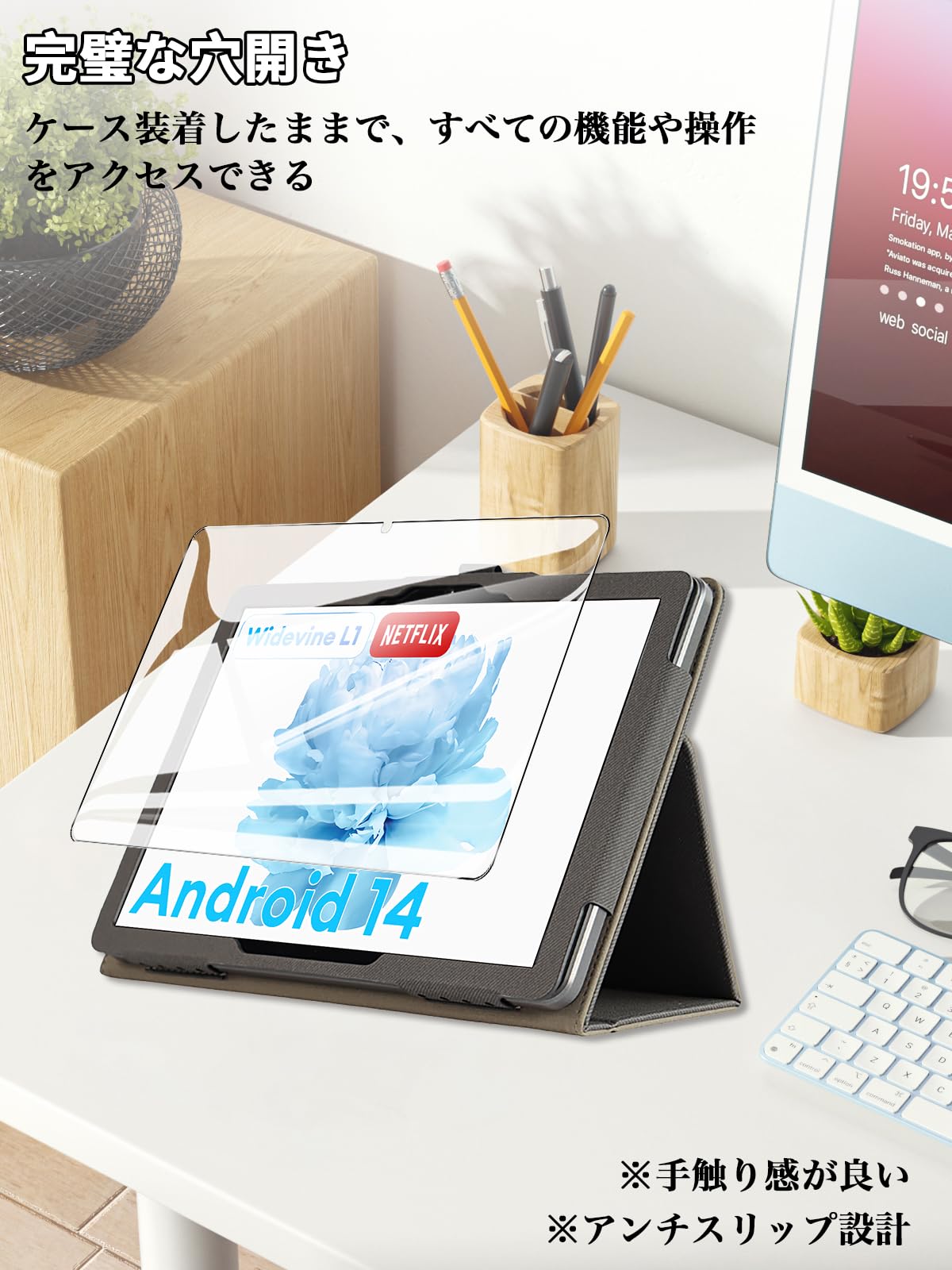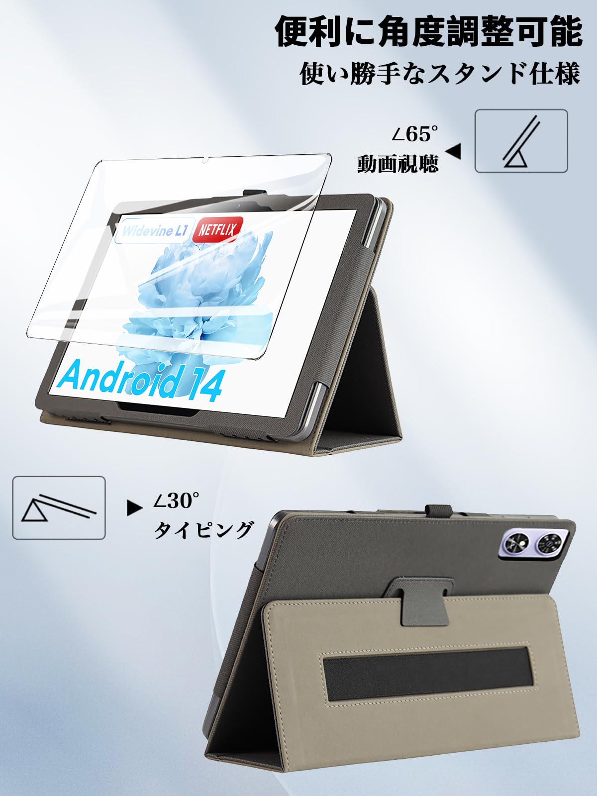 * 【スタンド機能】 フラップ部分には折り目が2ヶ所設けられており、折り曲がると手軽にスタンドに立てかける仕様より、タイピングや動画視聴などの2つの角度をご必要に応じてに使い分けられて、両手解放で動画鑑賞を楽々に楽しめ、仕事やゲームなどにもより快適に進められます。