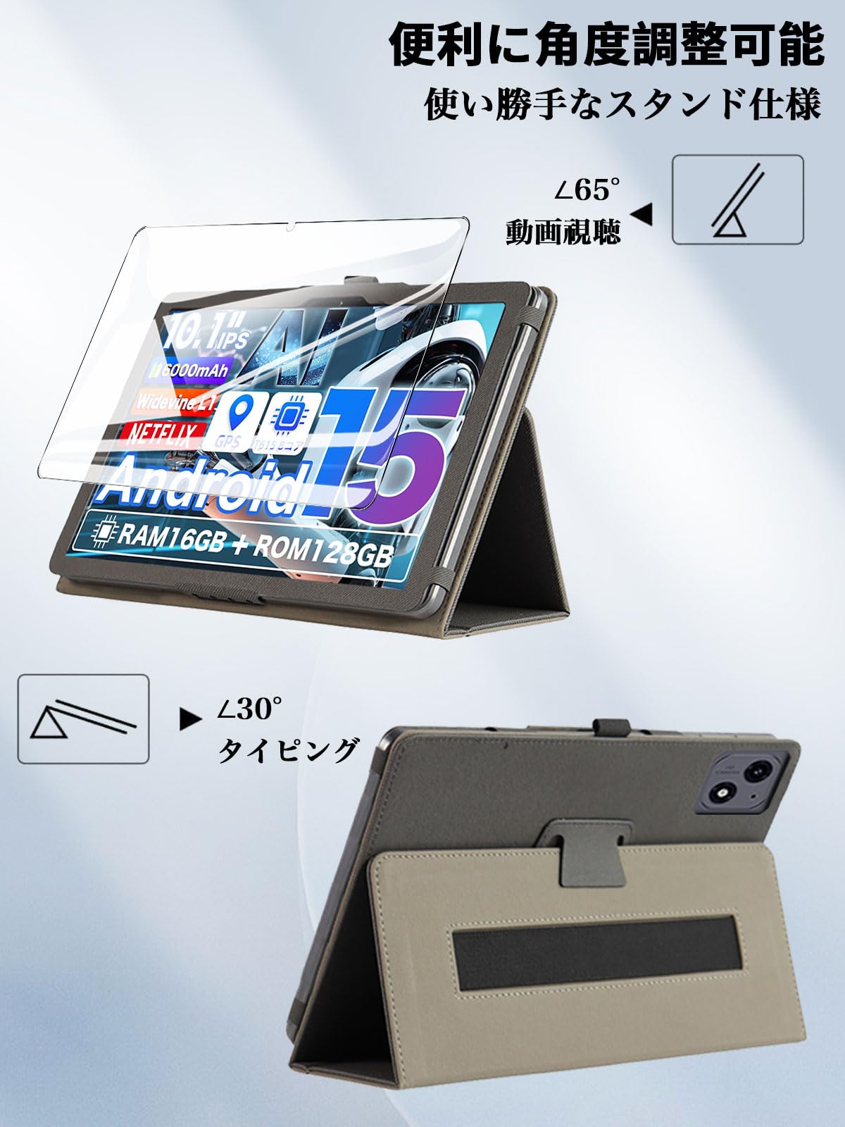 For Avidpad A60 ケース フィルム セット アビドパッド A60 タブレット 10.1インチ アンドロイド15 用 保護ケース ガラスフィルム 軽量 保護カバー 角度調整 上質PU製 汚れ防止 全方位保護 耐衝撃 【ブラック】+保護フィルム1枚
