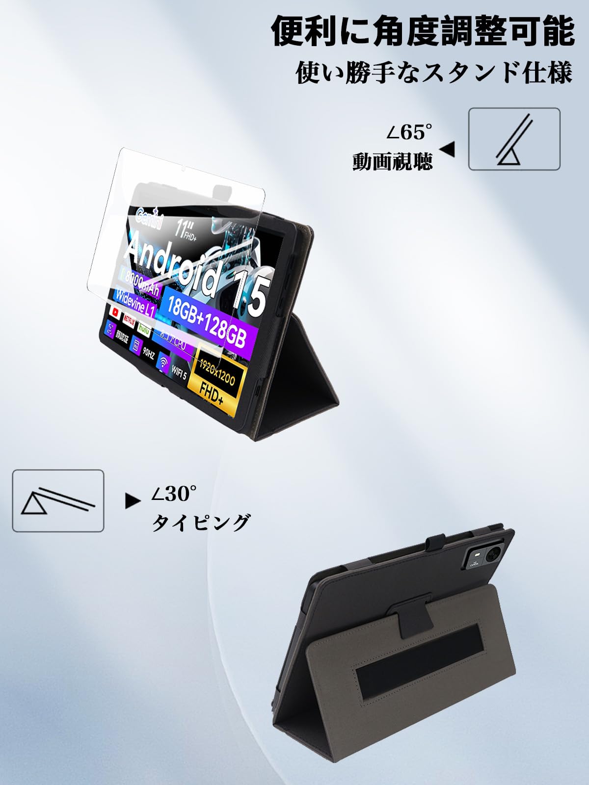 For FPD 11インチ タブレット ケース フィルム セット FPD CP11-J1 用 保護ケース ガラスフィルム 軽量 角度調整 上質PU製 全方位カバー 耐衝撃 【ブラック】+保護フィルム1枚