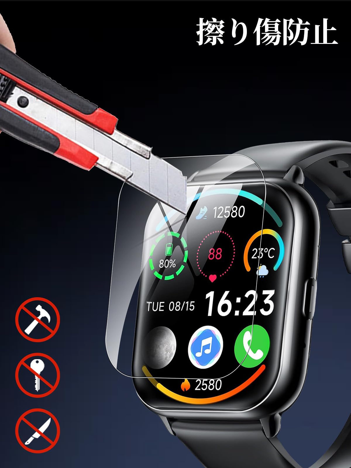 * 【幅広い機種に対応・方形スマートウォッチ専用】1.85/1.9/1.91/1.92インチの方形スマートウォッチ画面に対応。精密カットで画面全体をしっかりカバーし、ケースとの干渉も防止します。
