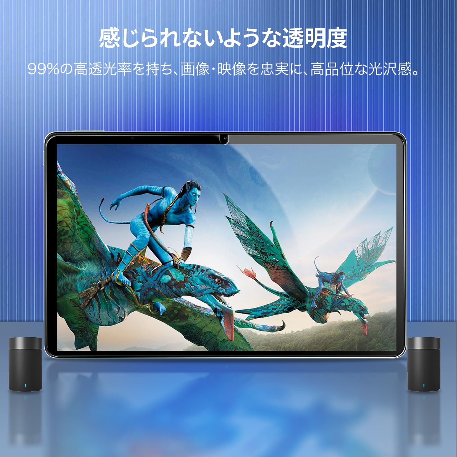 * 【高透過率】透過率高 超えのガラスフィルムで、液晶画面の鮮明度を損なうことなく、画面本来の美しさをそのまま表現します。高透明度 ガラスフィルムで、貼っても貼っていないようなクリア感。タブレットの液晶本来の美しさを損わない、絶妙な画面感を実現します。