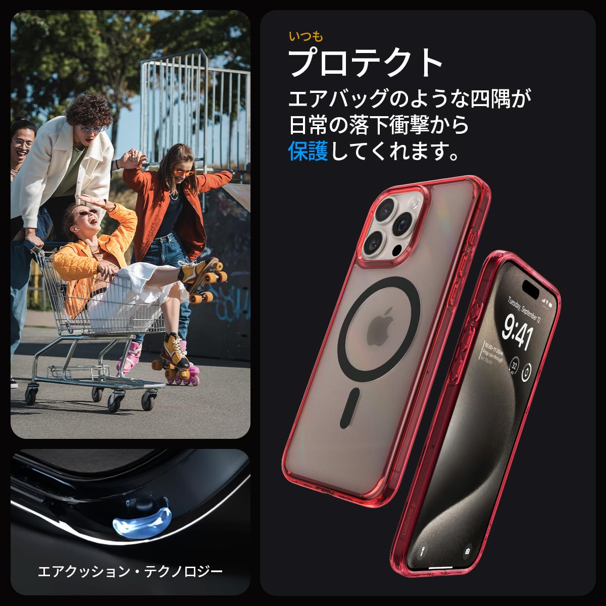 Spigen 【創業18年の技術力】 iPhone 15 Pro Max ケース 半透明 MagSafe対応 米軍MIL規格 ウルトラ・ハイブリッド・マグフィット ACS07056 (フロスト・ディープ・レッド)