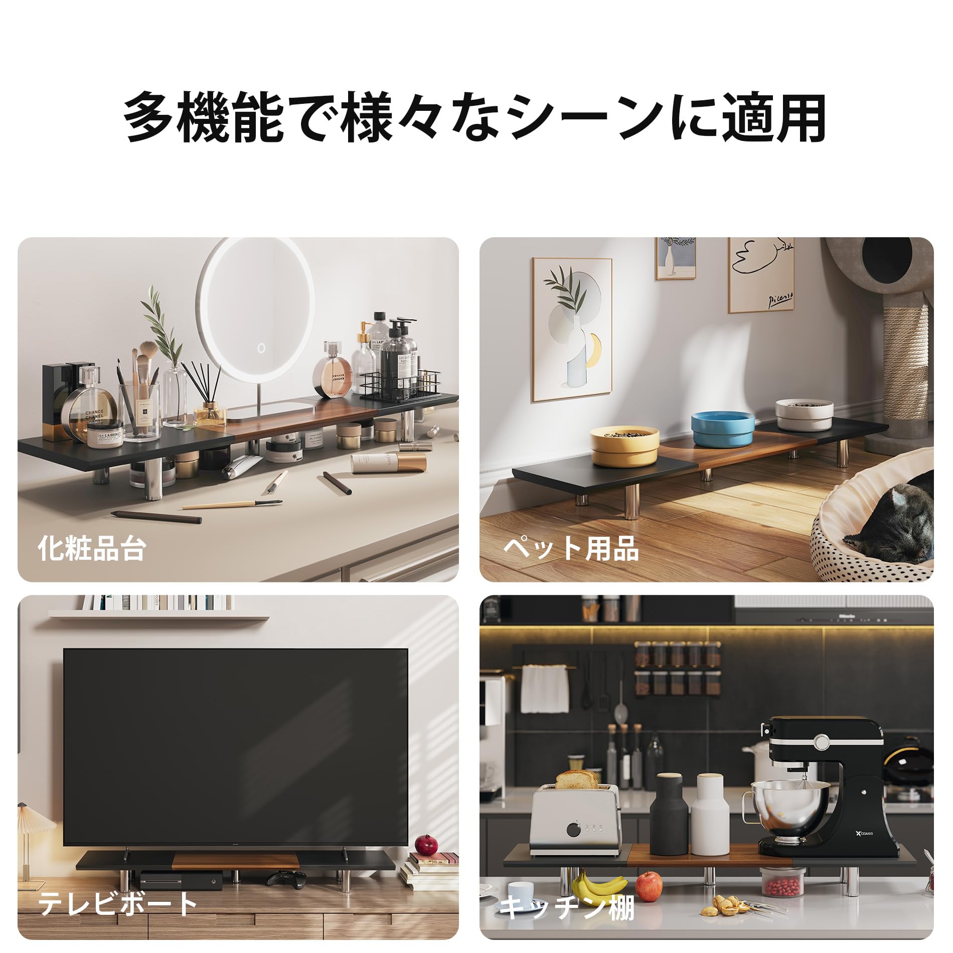 * 【耐荷重45KGの堅牢性、安定性】机上台は4本の足(直径3cm)で天板をしっかり支え、安定性が抜群です。厚さ1.8cmの板で作られたモニタースタンドは最大の耐荷重はなんと45KGです。机上台の下の奥サイトに支柱を設置して、耐荷重を確保するだけでなく、収納の邪魔にもなりません。