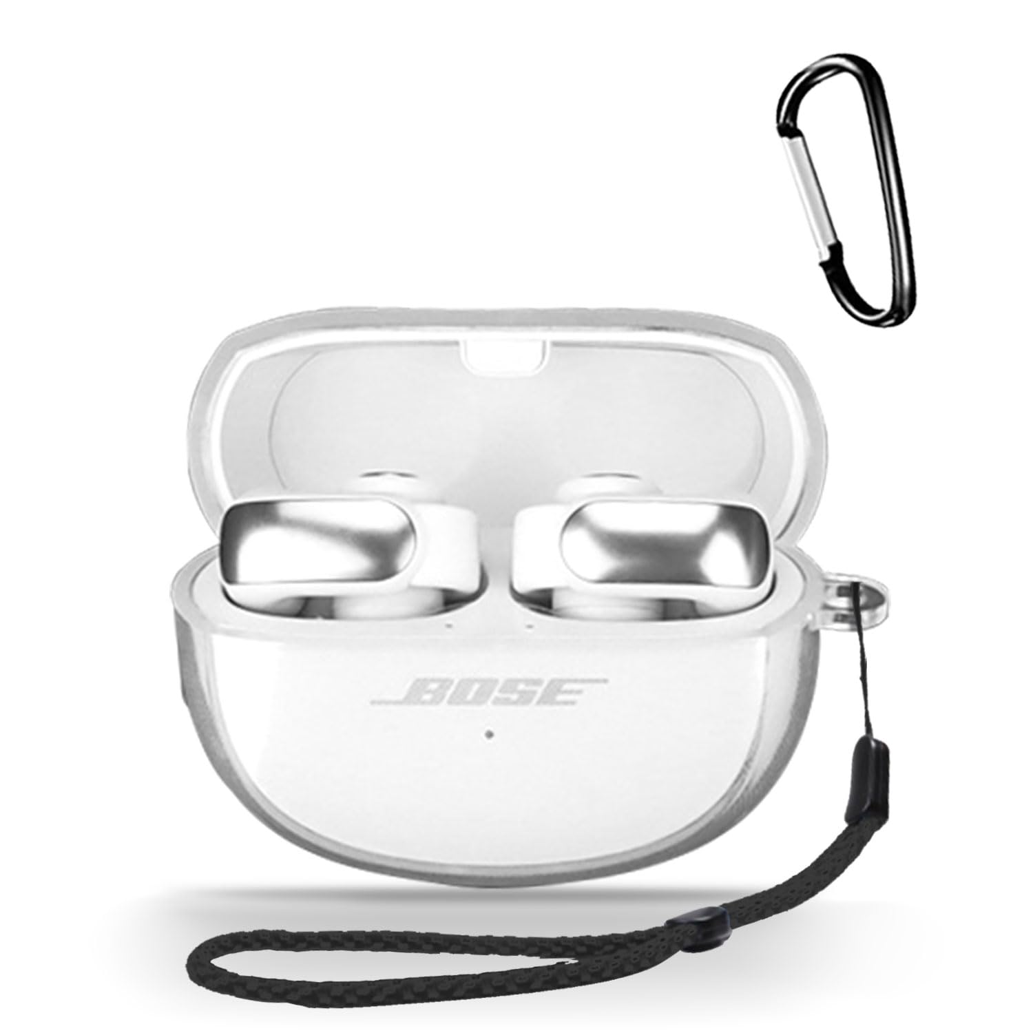 Bose Ultra Open Earbuds 用 ケース 全面保護カバー シリコンケース 【HUKWIMO】 カラビナ付き 耐衝撃 防水 防塵 装着充電可能 全面保護 キズ防止 Bose Ultra Open Earbuds 対応インイヤーヘッドホン用ヘッドホンケース [クリア 透明]