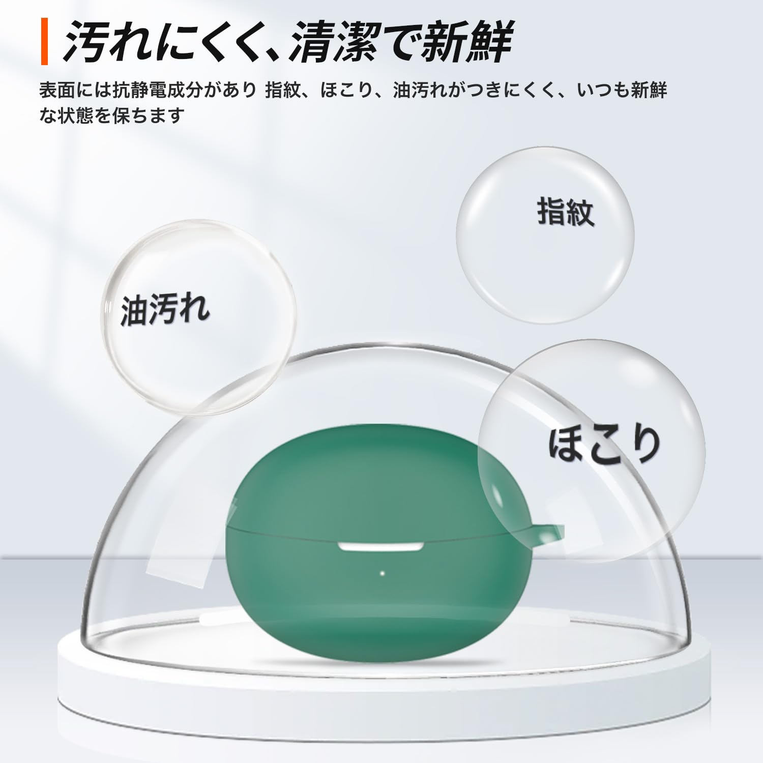 QCY Crossky C30 用 ケース 全面保護カバー シリコンケース ヘッドフォンフック ストラップ【HUKWIMO】 カラビナ付き 耐衝撃 防水 防塵 装着充電可能 全面保護 キズ防止 [グリーン 緑]