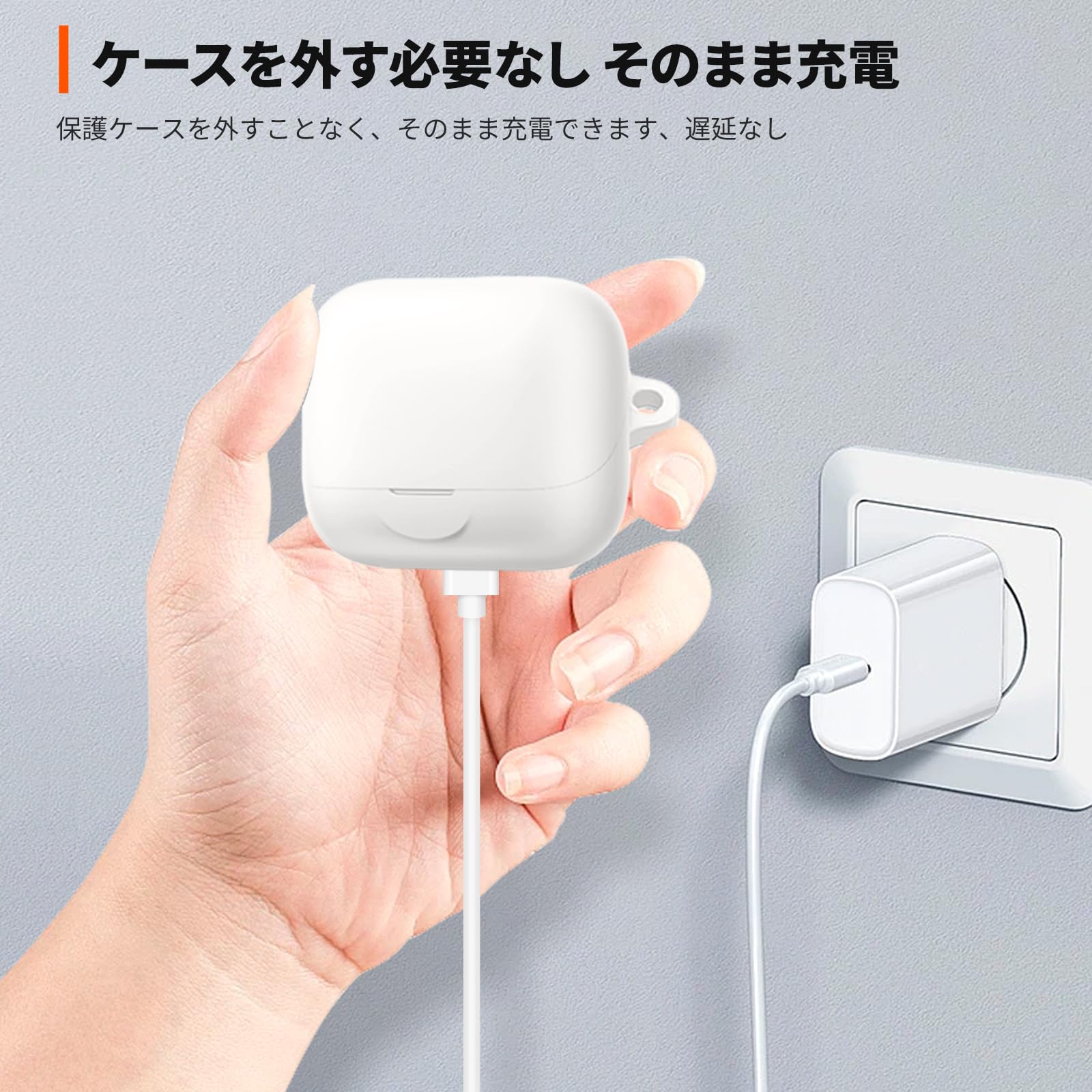EarFun Air Pro 4+ 用 ケース カバー 【HUKWIMO】 カラビナ付き+ストラップ付き 耐衝撃 防塵 装着充電可能 全面保護 キズ防止 EarFun Air Pro 4 Plus 対応 [ホワイト 白]