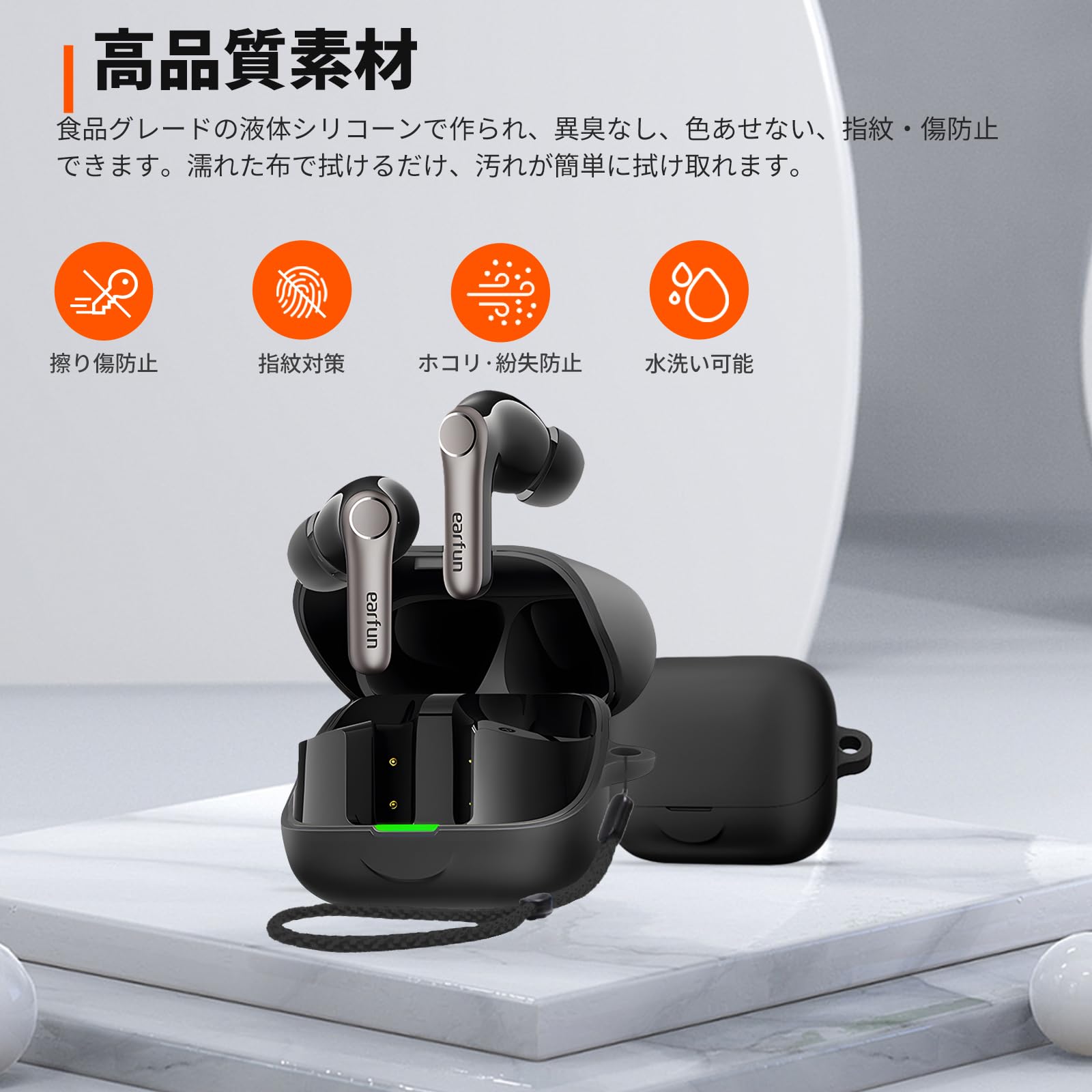 * 【対応機種】EarFun Air Pro 4+ / Air Pro 4 Plusの対応ケースです。ケースの素材は、高い撥水製と弾力性に優れたシリコンを採用し、柔軟性があり優しい手触りです。