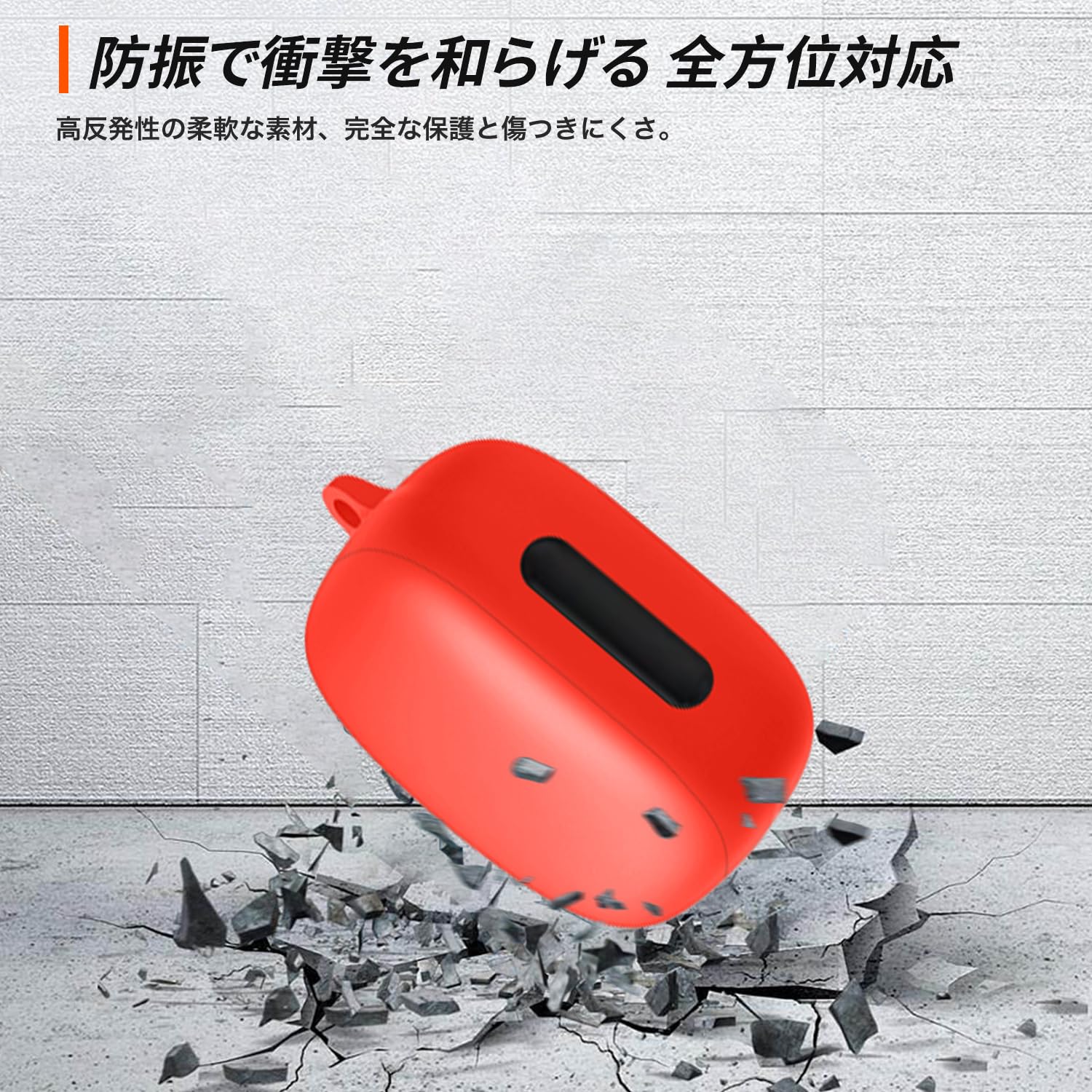 For Anker Soundcore Liberty 4 Pro用 ケース カバー シリコンケース 【HUKWIMO】 カラビナ付き ストラップ付き 耐衝撃 防水 防塵 装着充電可能 全面保護 キズ防止 [レッド 赤]