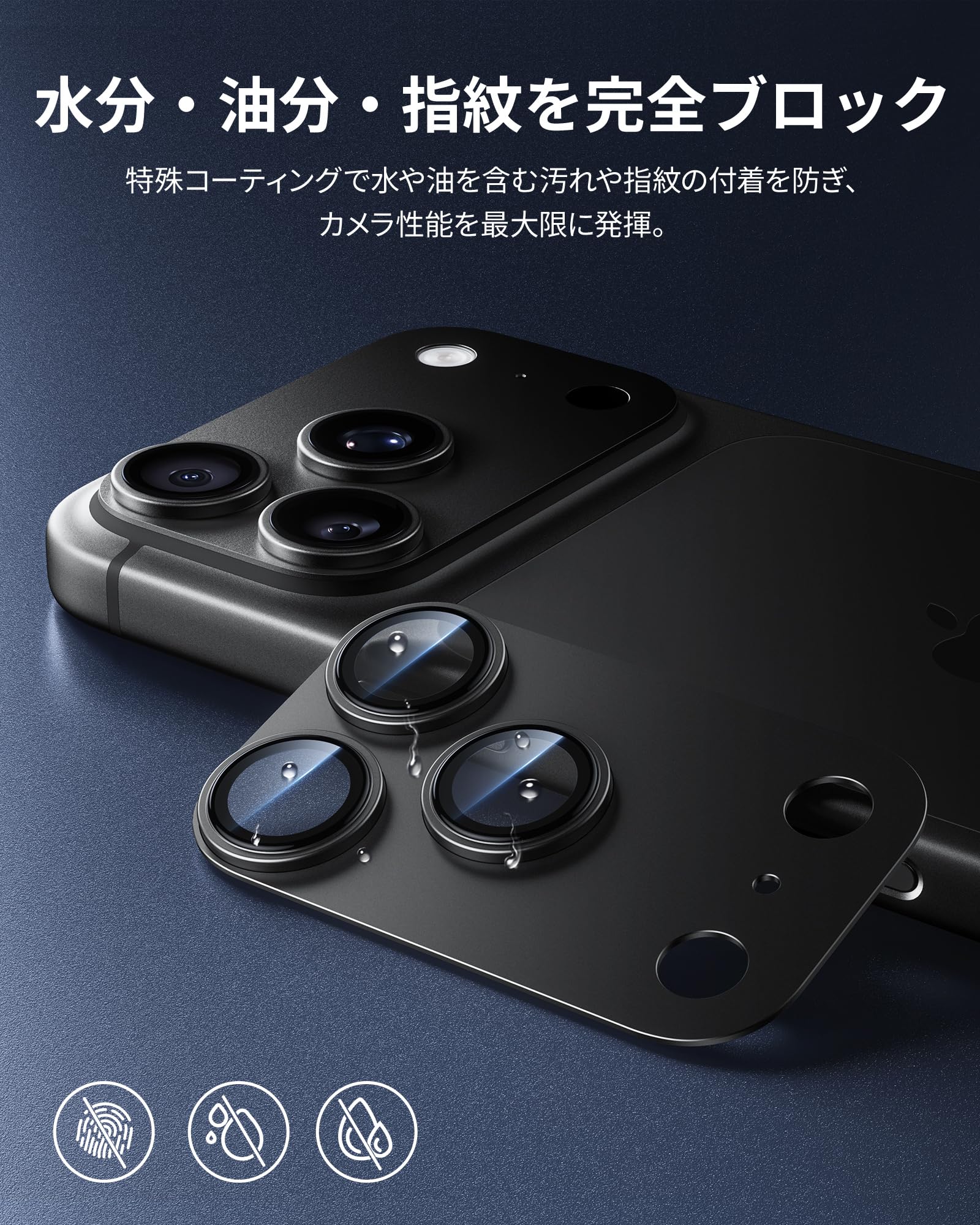 * 【撥水撥油・指紋防止】iPhone17pro カメラ保護には高耐久撥油コーティングを施しているため、指紋や汚れが付着しにくく、付いた汚れもサッと拭き取れるので、常に清潔な状態が維持できます。