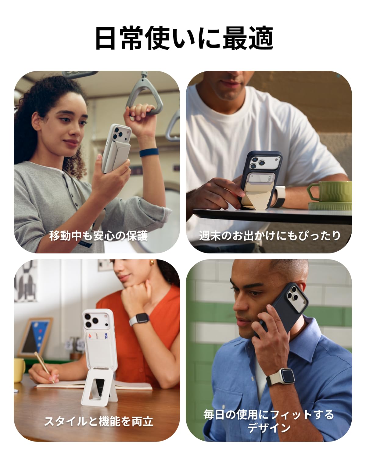 * 【MOVASの美しさ・柔らかな手触り】MOFT独自開発の「MOVAS」ヴィーガンレザーは、環境に優しい最新技術を採用し、肌になじむ柔らかな質感や究極の握り心地を満喫できます。 この素材は軽量で持ち運びやすく、美しさが長持ちし、長時間に使用しても上品な光沢を保ちます。ジーンズのポケットに入れても、鍵やカードキーなどと一緒に持ち歩いても、傷がつきにくいです。MOVASレザーケースは実用的なケースであるだけでなく、機能性を保ちながらiPhoneに洗練された感覚を加えるファッションのアイテムでもあります。