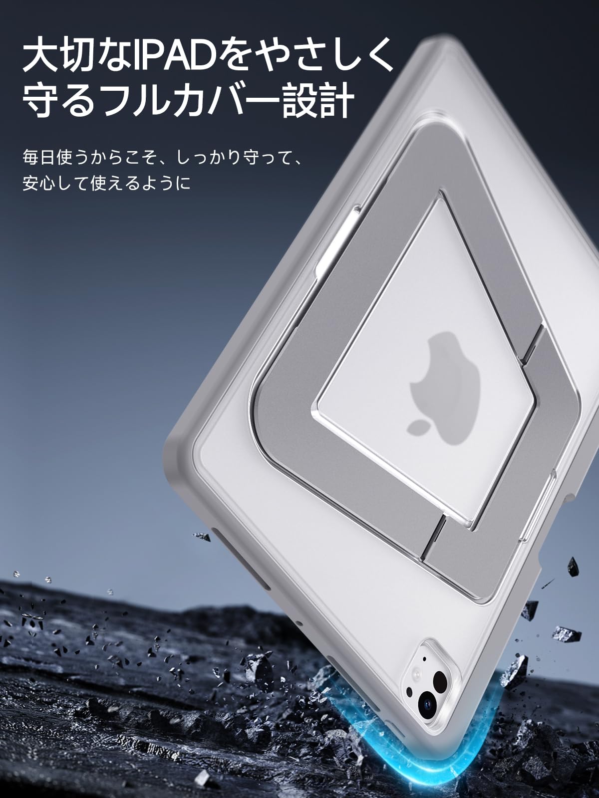 * 【信頼できる耐衝撃保護】:米軍の耐久基準「MIL-STD-810H」を大きく上回るテストをクリア。硬質なポリカーボネート背面と柔らかいTPUバンパーを組み合わせ、日常の落下や擦れからしっかりガード。さらに、四隅に搭載されたX-SHOCK第3世代構造と360°エアクッションが衝撃を吸収し、大切なアイパッド プロをしっかり守ります。