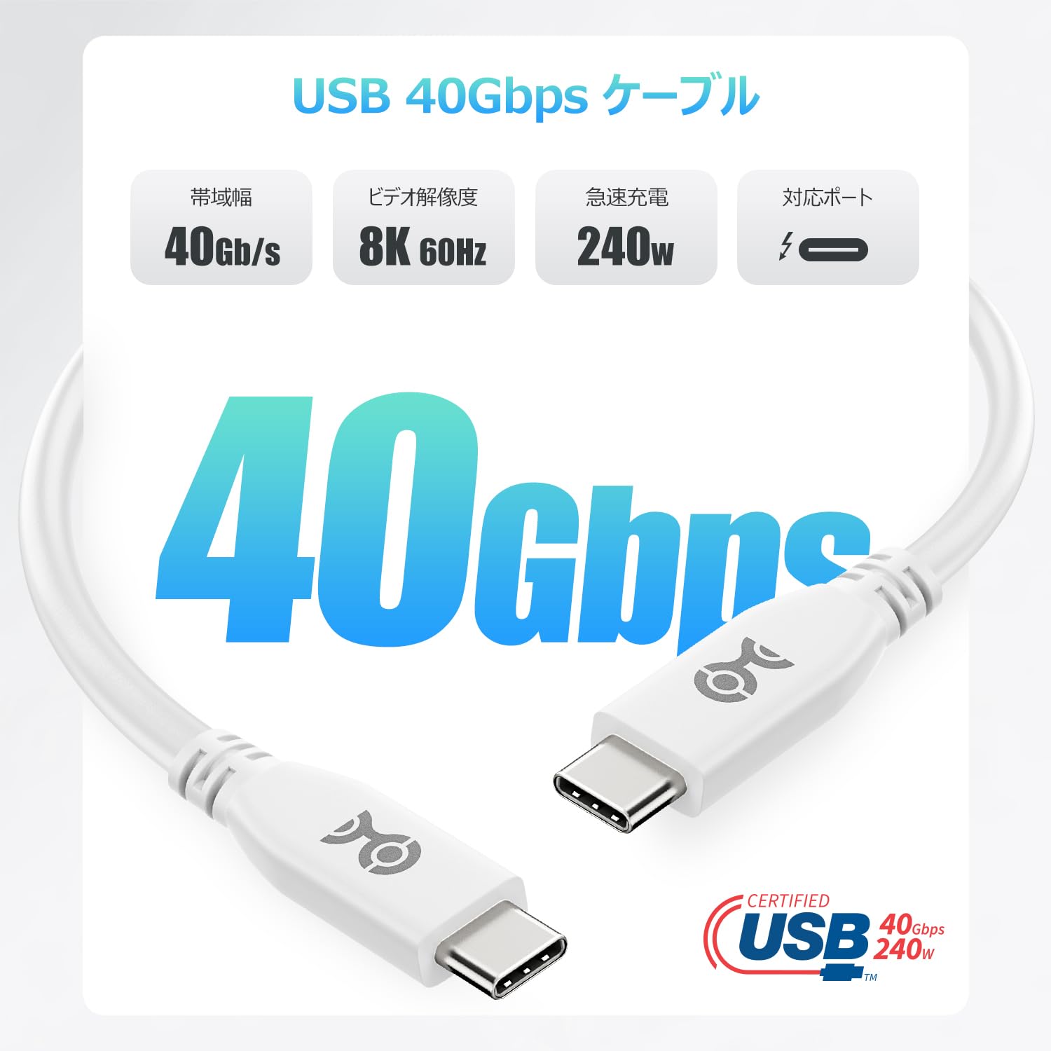 * 【USB4規格に準拠】USB4ケーブルは最新のUSB4規格に準拠し、最大40Gbpsの帯域幅、8Kビデオ、240W PD充電に対応しています。