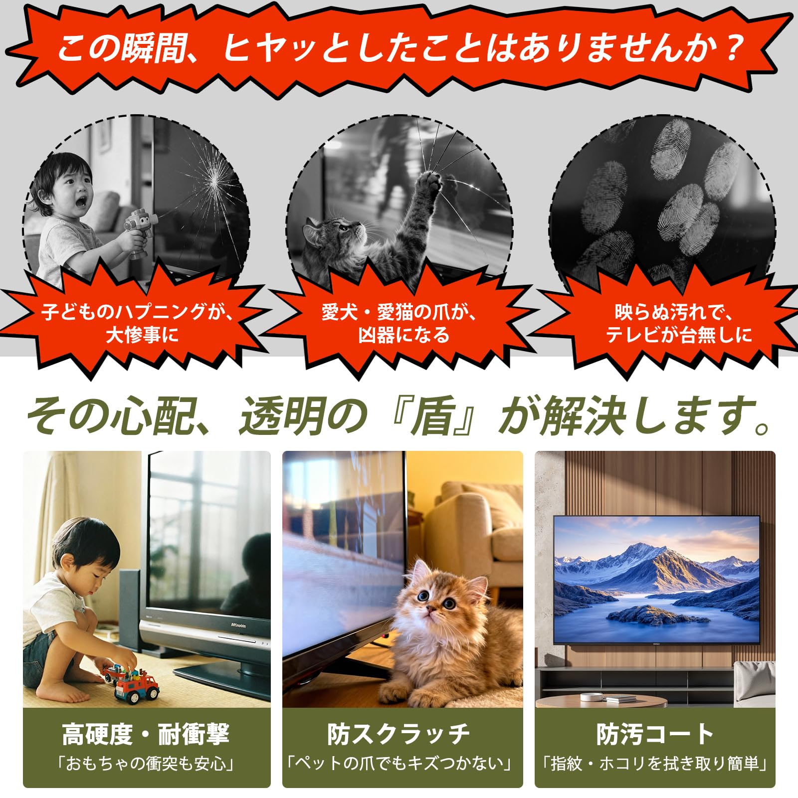 * 【全方位の保護】このTVプロテクターは、日常的にテレビを保護する便利なアシスタントです。 指紋や傷に強いだけでなく、子供の遊び、ペットの行動、激しいゲームをプレイするための画面のキャスト、素晴らしいテレビ番組の視聴、毎日の掃除など、潜在的な脅威を大幅に軽減し、これらの状況下でも安全で、使用するたびに安心して休むことができます。