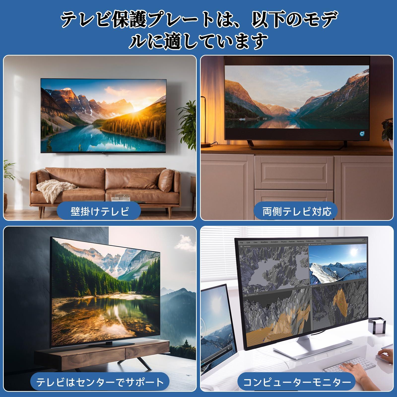 * 【対応機種/交換性】この液晶テレビ保護パネルは730x 440mmで、32インチのテレビ画面に適しています。 シングルポイントサポートテレビ、ダブルポイントサポートテレビ、壁掛けテレビ、コンピュータモニタに適しています。ご購入前に、製品のサイズとご自身のテレビのサイズを予めご確認ください。