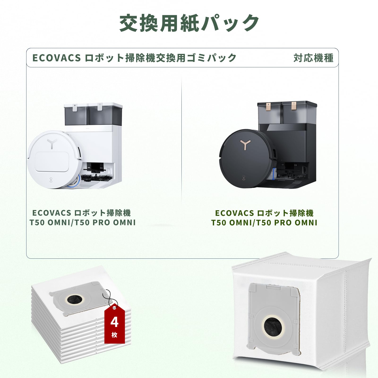 【4枚入り】ECOVACS 交換用 紙パックDEEBOT T80 OMNI/T50 PRO OMNI/X8 PRO OMNI/X8 OMNI ロボット掃除機 交換用ダストバッグ