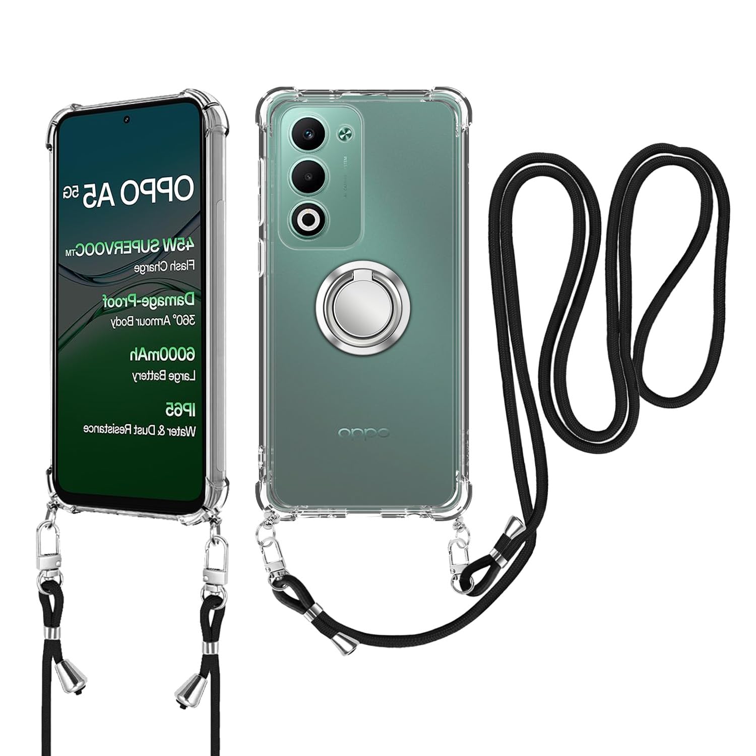 For OPPO A5 5G ケース 肩掛け スマホケース 斜めがけ 織りストラップ付き 縄掛けケース 【HUKWIMO】調節可能なショルダー クリア ショルダー 薄型 耐衝撃 紐付き 落下防止 ファッションデザイン 柔軟で変形しない [クリア 透明]