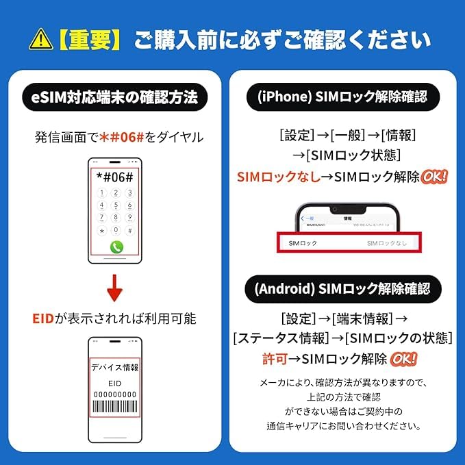 * 注意事項②:eSIM対応端末の利用可能。※通信キャリアによって、一部esim機能を制限する場合がございます。事前にご確認の上、ご購入ください。