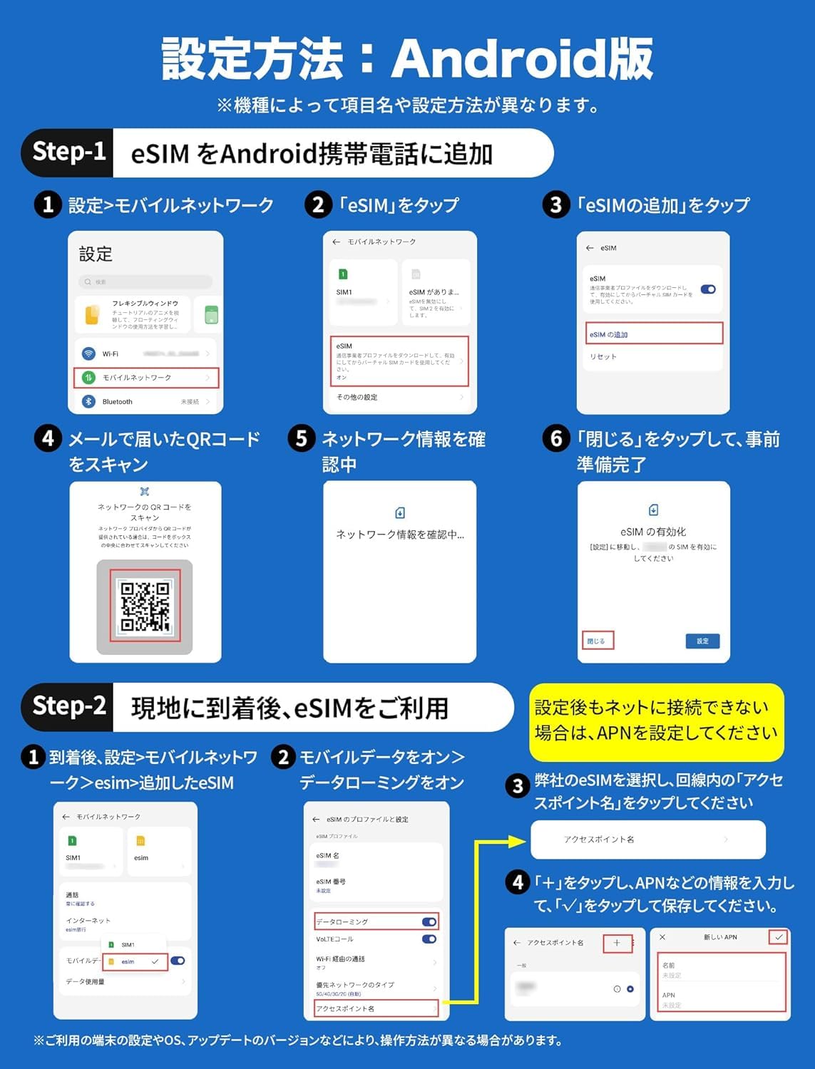 * 注意事項:日本国内でeSIMをインストールした場合、アクティベートできませんとエラー表示されることがございますが、eSIM不良ではございません。アクティベート(eSIM回線の利用)は韓国でのみ可能です。