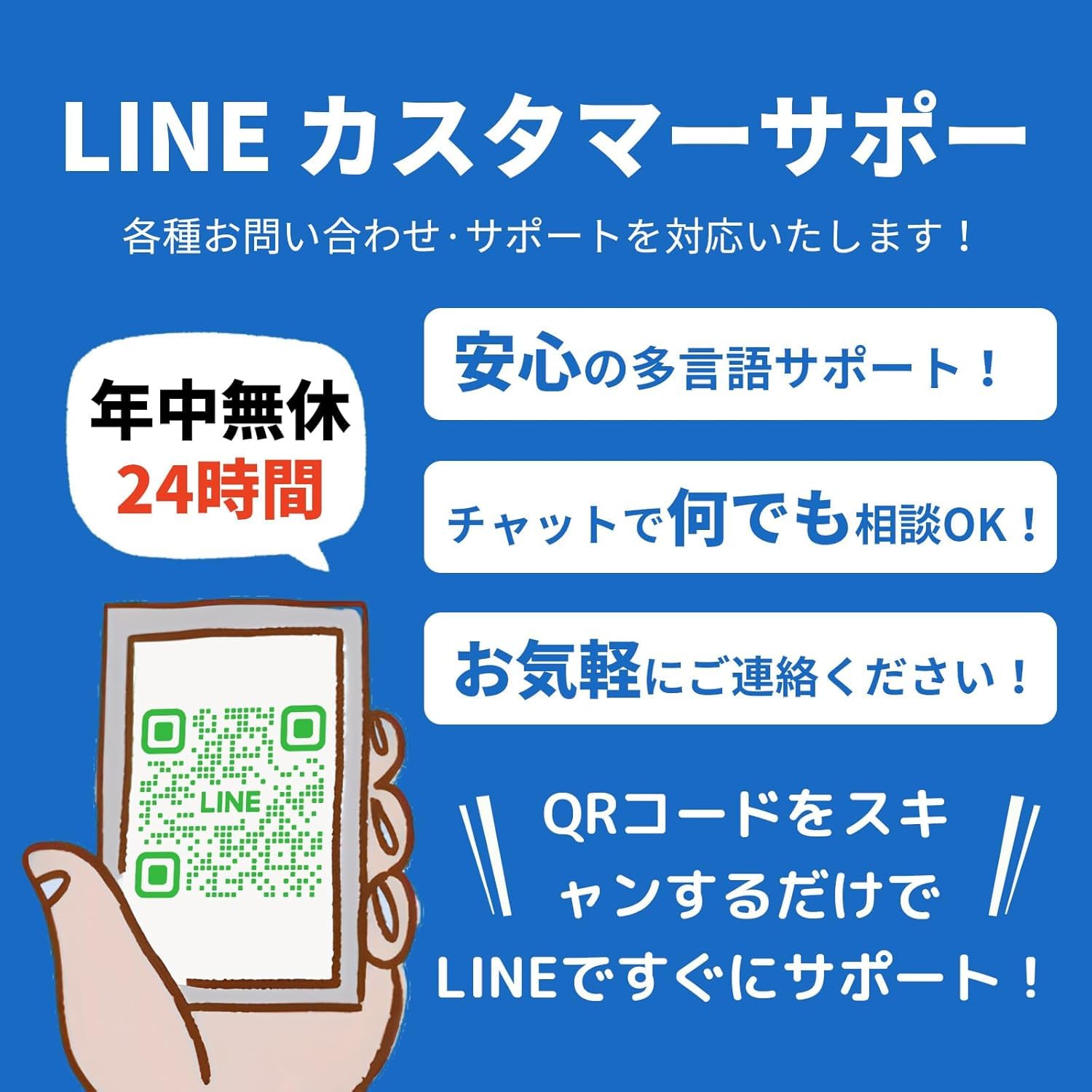 * 【年中無休・24時間サポート】ご不明な点やトラブルがあれば、LINEでお気軽にお問い合わせください。(日本語・英語・中国語対応)